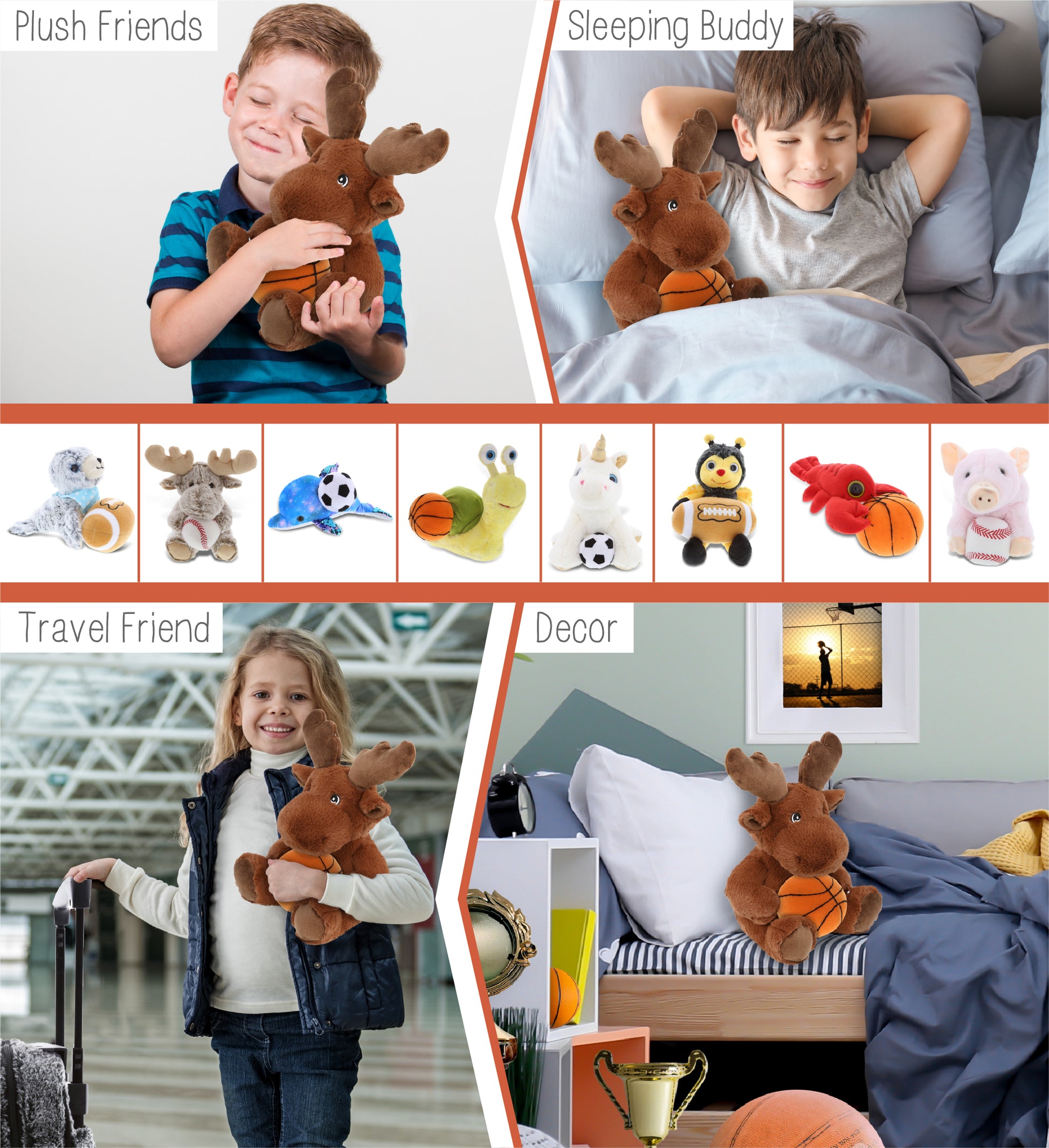ECO FRIENDLY SUPER-SOFT PLUSH - MOOSE 9" With Basketball Plush