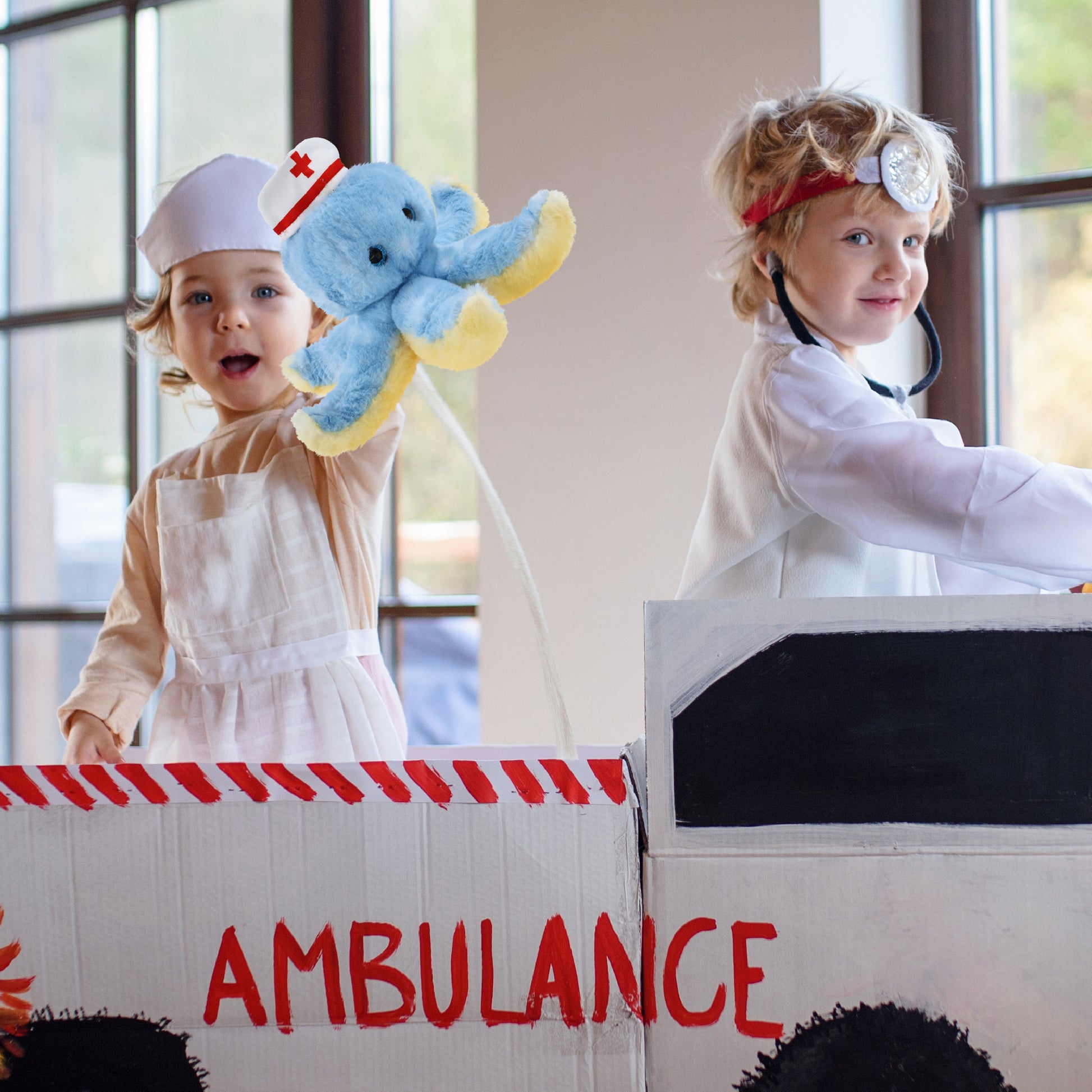 If you're looking for cute hospital gifts for kids, get well octopus for your friend, or an octopus teddy bear in costume, this octopus nurse doll with an octopus nurse hat brings a playful vibe to any occasion. Ideal hospital gifts for children to make them feel safe, or as medical toys for kids to inspire them at a young age. The perfect stuffed animal octopus for nurses and for creative storytelling. The stuffed octopus nurse hospital toy features a classic nurse hat. Designed with a red cross against the white nurse cap, it adds charm and style. The octopus plush has soft plush, perfect for everyday cuddles and snuggles. This stuffed animal octopus makes the perfect addition to your collection of octopus teddy bear with clothes or giveaway hospital toys to give to sick children. The super soft octopus plush comes with a cute nurse hat. Make your nurse teddy bear stuffed animal octopus plush special by adding a personalized name, which we'll imprint onto the plush. You can also customize your nurse octopus plush by adding any of our add-ons to create the perfect gift: 1) Gift Bag 2) Tissue Paper 3) Greeting Card. This cute stuffed animal octopus plush nurse is crafted with soft, durable polyester materials. The octopus nursing stuffed animal is built to last endless cuddles. The nurse hat is carefully stitched to the octopus plush to ensure it stays secure during playtime. Its soft yet sturdy design makes this octopus plush nurse a comforting companion for kids and collectors. Includes 1 DolliBu Blue Octopus Plush with Nurse Outfit - It comes with a cuddly stuffed animal octopus plush in a classic nurse hat, complete with a white nurse cap with a red cross printed in front. This octopus toy with a nurse teddy bear white nurse cap is perfect for role-playing or plush gifts for someone who is sick for them to feel cared for. It measures 9.5Lx9Wx5H inches. This plush octopus is ideal for kids ages 3 and up.