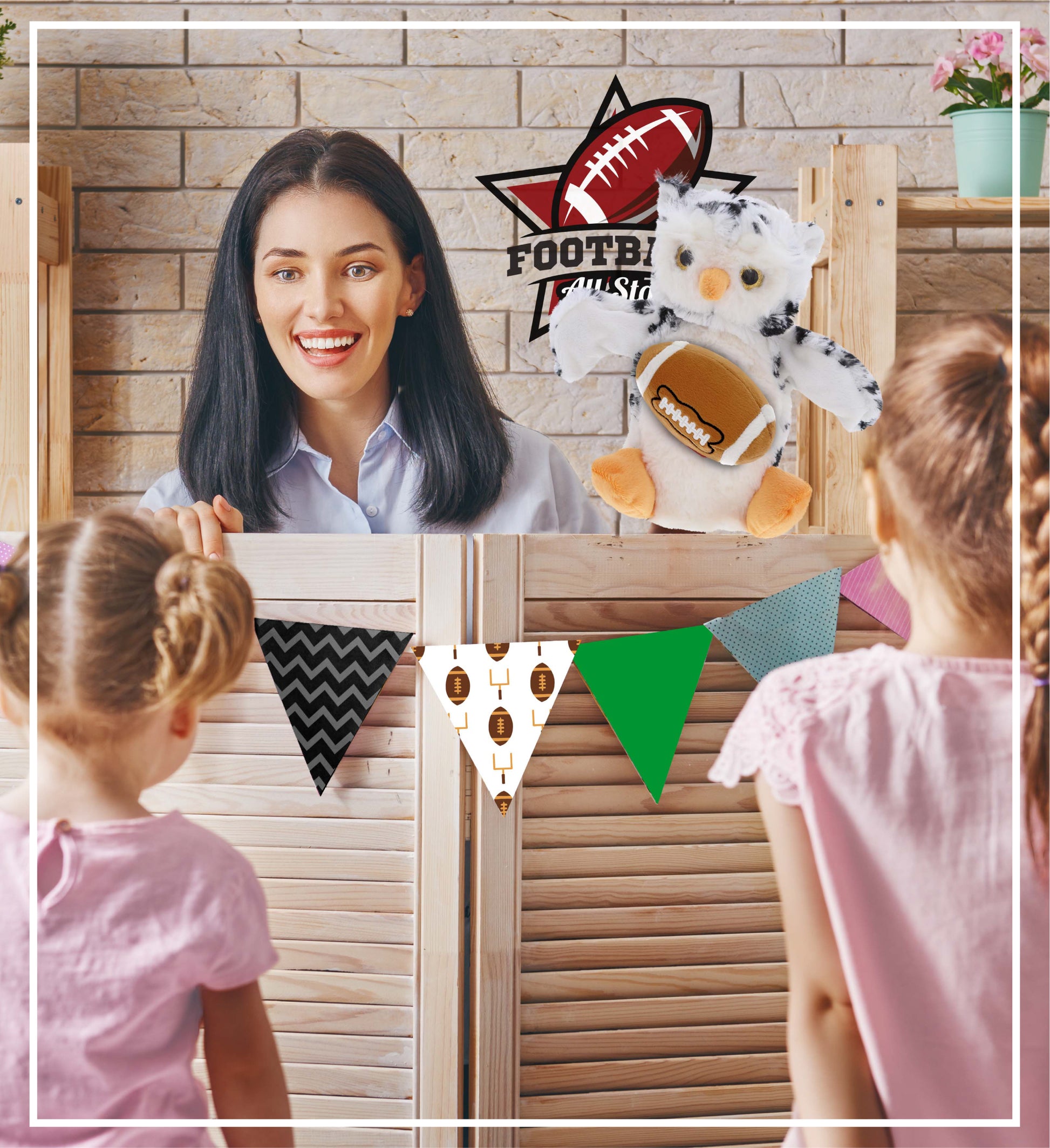 SUPER SOFT PLUSH HAND PUPPET - WHITE OWL WITH FOOTBALL PLUSH