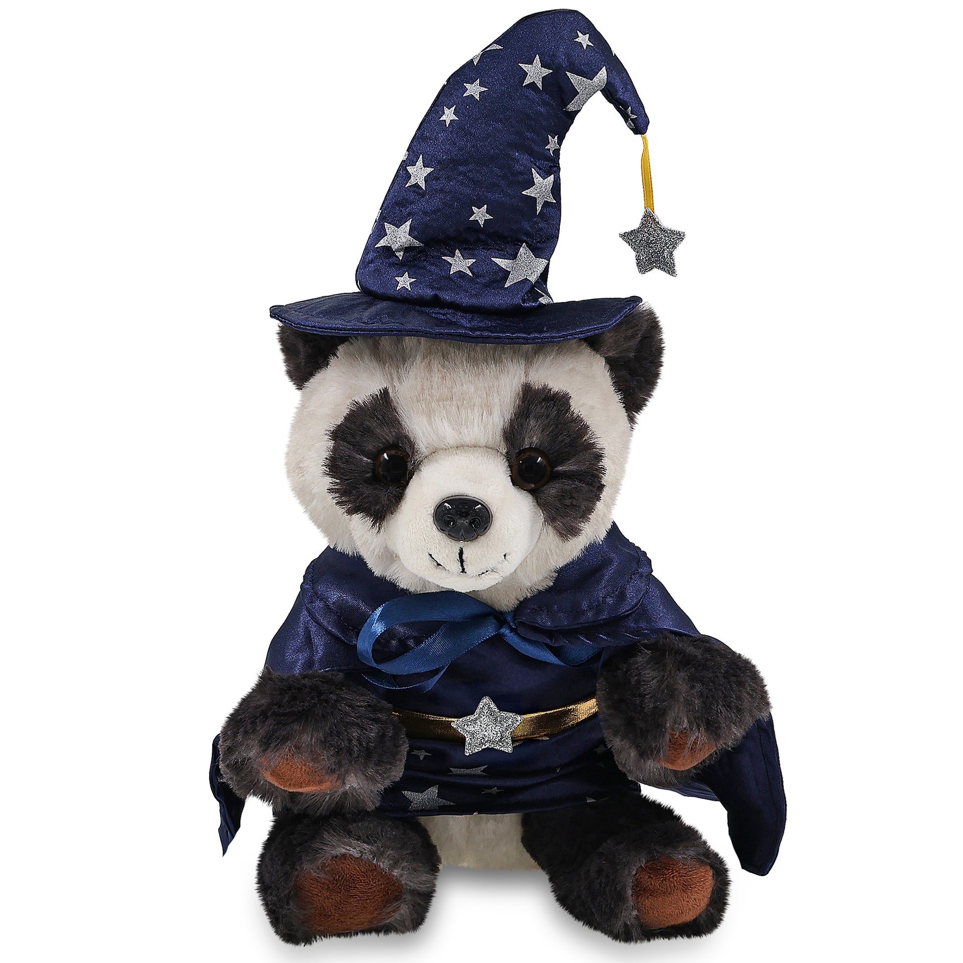 Features a Cute Teddy Bear Plush with Wizard Teddy Bear Costume - With a wizard cloak and wizard stuffed animal hat adorned with silver stars, this panda Halloween stuffed animal has a playful and stylish magical look! The detailed wizard costume adds character to your floppy stuffed animal toys and makes them stand out among other cute plush toys. Everyone will love to play with a huggable stuffed animal with a wizard dress up set.