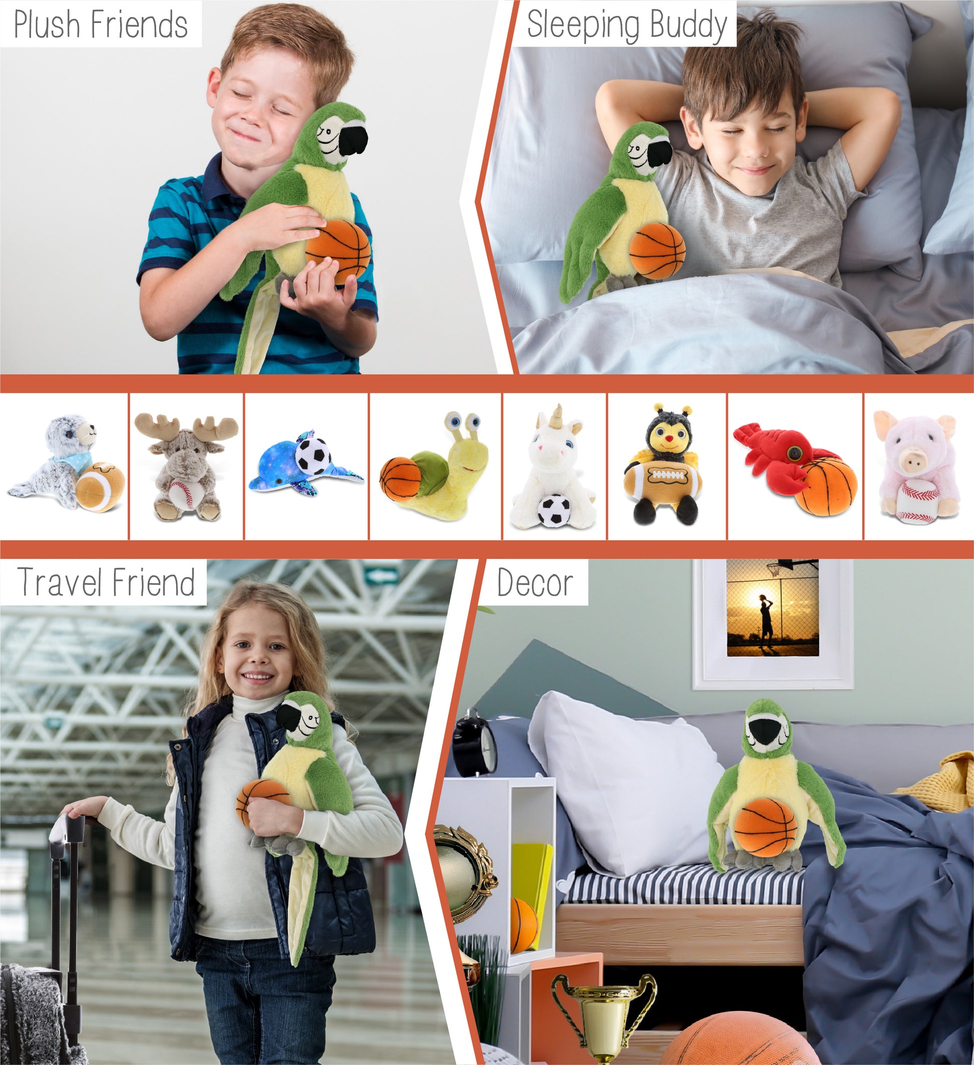High-Quality Super Soft Plush Parrot Stuffed Animal - The machine-sewn green parrot toy plush and basketball are made of premium-quality polyester stuffed with soft fluffy polyester fillings. Made with durable and child-friendly features. Cute and snuggly parrot. Cute soft toys designed to be your little one's best buddies. To maintain fluffy stuffed animals, wash parrot plush toy with cold soapy water and allow it to air dry.