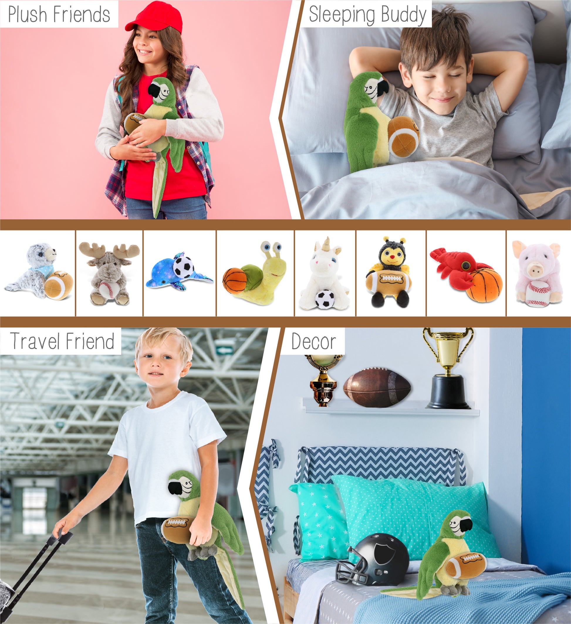 High-Quality Super Soft Parrot Stuffed Animal - The machine-sewn parrot toy plush and football are made of premium-quality polyester, stuffed with soft, fluffy polyester fillings. Made with durable and child-friendly features. Cute and snuggly parrot plush toy. Cute, soft toys designed to be your little one's best buddies. To maintain fluffy stuffed animals, wash plush toys with cold soapy water and allow them to air dry.