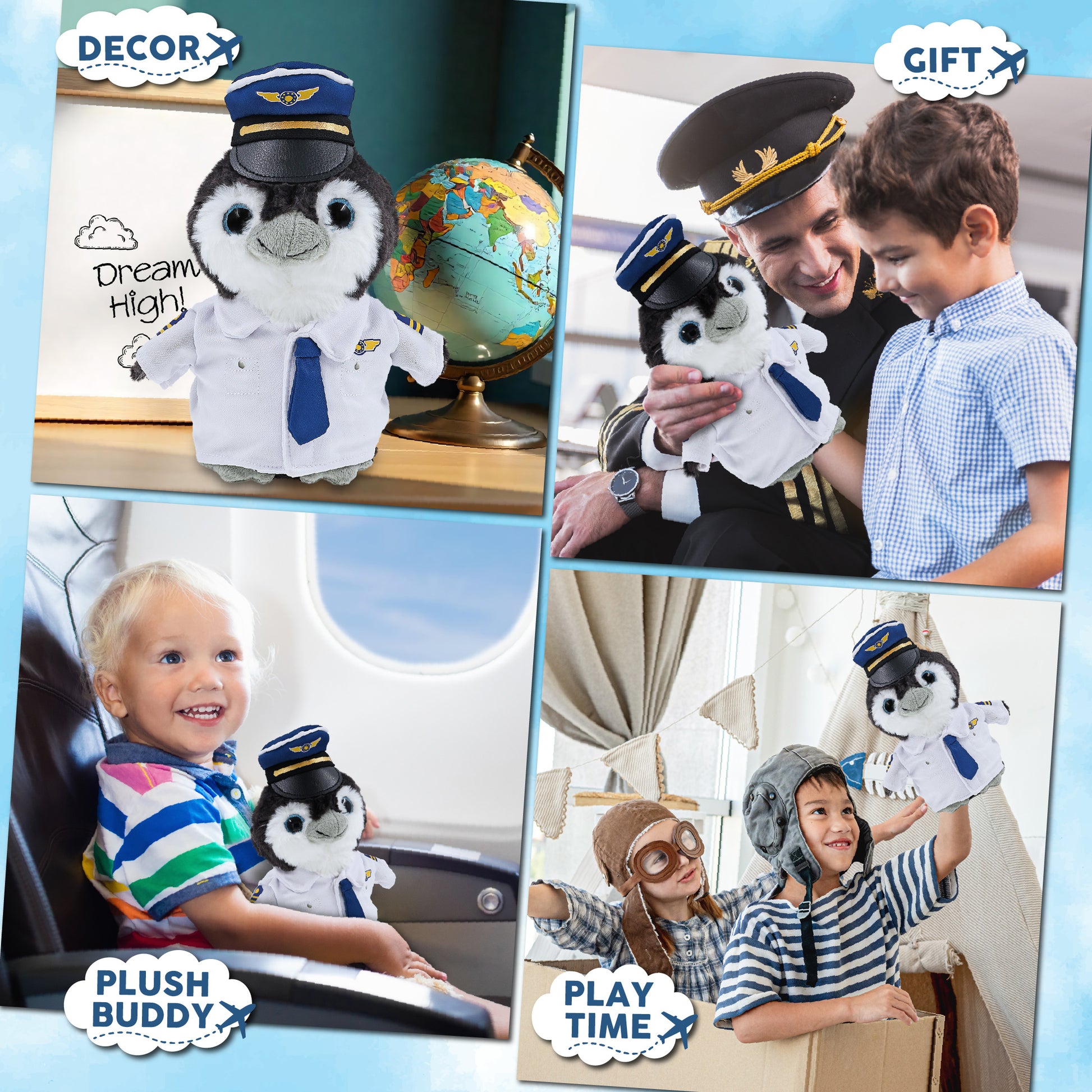 Made of High-Quality Polyester - The penguin plush pilot toy is made with super-soft, premium-quality polyester materials. The teddy bear stuffed animal is designed for everyday hugs and dress up fun. The pilot plush penguin is a fun option for kids who love imaginative play and aviation toys. It is a perfect addition to your collection of pilot accessories for stuffed animals, airline outfit for stuffed toys, and plush accessories.