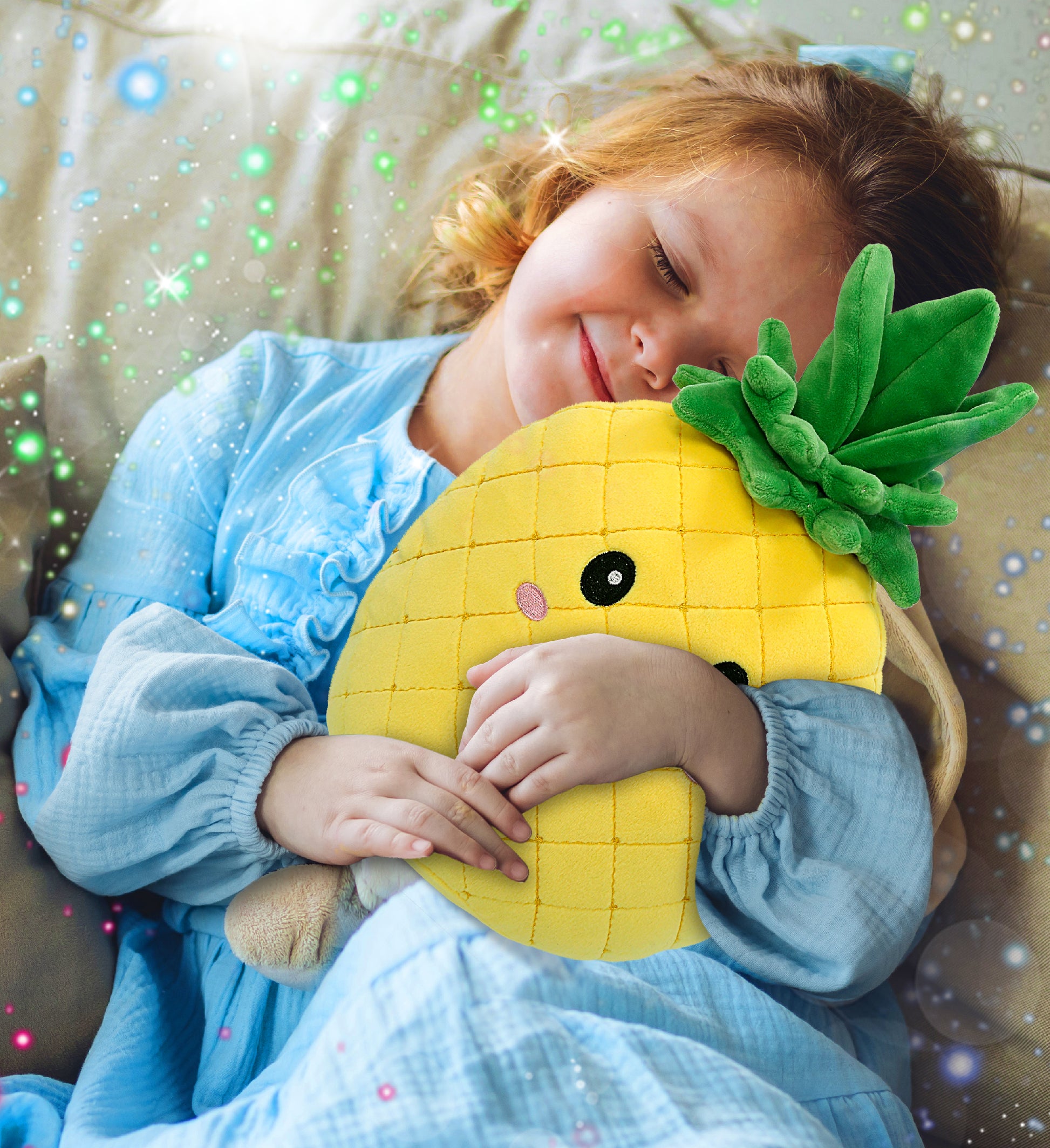 High-Quality Pineapple Sensory Plush Toy - The Snug-Mooshies Pineapple soft cuddle toys are made with high-quality, super soft 100% polyester. Crafted with durable, child-friendly embroidered features that make a safe, cuddly, squishy, and cute stuffed animal. Designed to be your little one's favorite pineapple-themed plush toy. Maintain the stuffed pineapple toy by washing it with cold, soapy water and allowing it to air dry. Ideal for all ages.