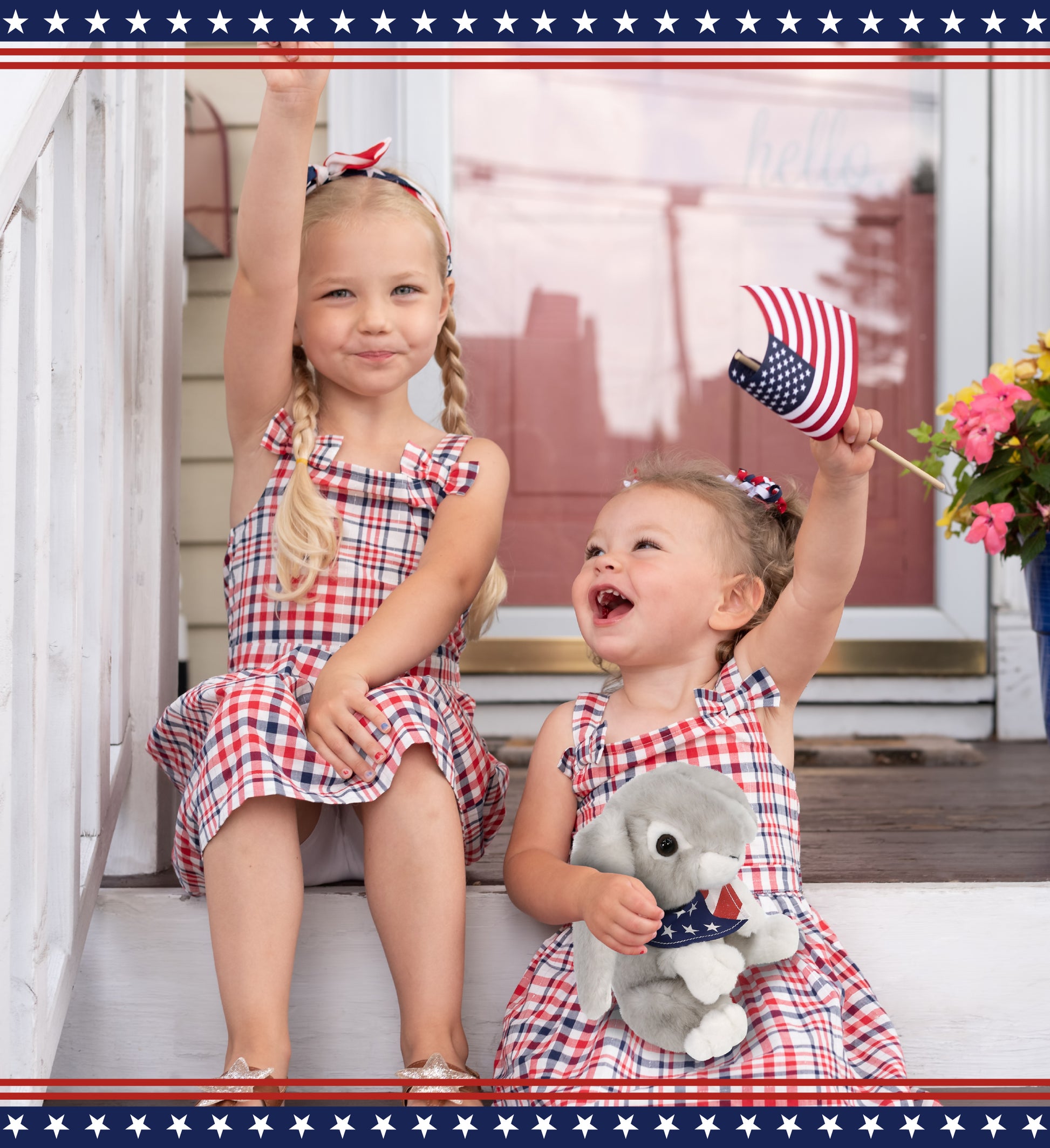 Includes 1 DolliBu Grey Rabbit Toy with USA Flag Bandana Dress Up Set - The stuffed animal rabbit arrives with a removable red, white and blue USA flag bandana, making it a standout among stuffed animals with clothes. Turn your classic teddy bear rabbit into collectible patriotic stuffed animal perfect for celebrating USA holidays. The rabbit stuffed animal measures 4.5Lx4Wx6.5H inches and is for kids ages 0 and up.