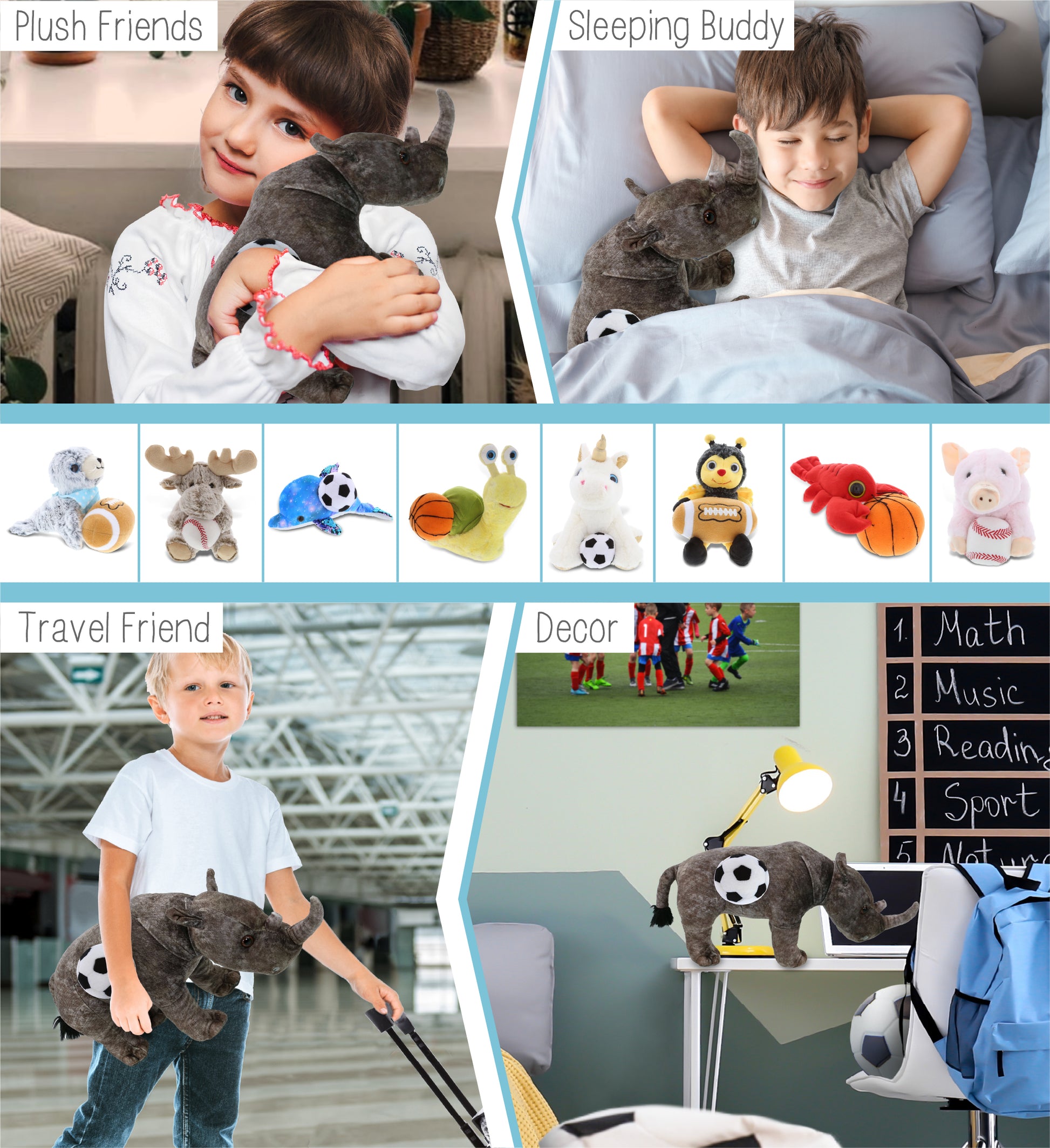 WILD COLLECTION PLUSH - RHINO 15" WITH SOCCER PLUSH