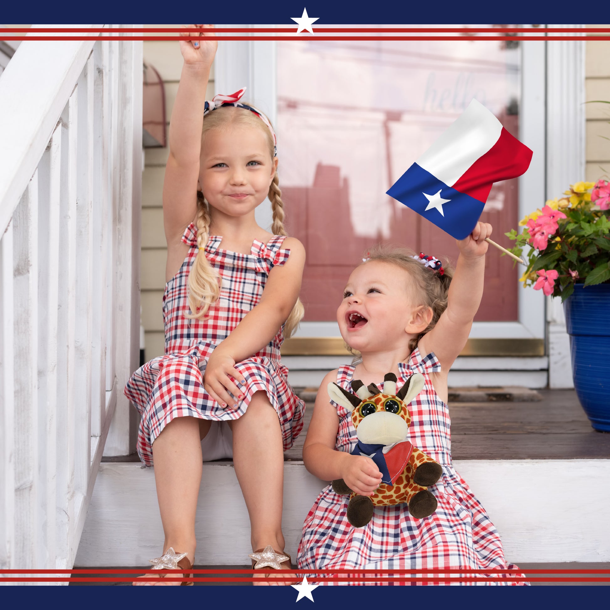 Looking for Texas souvenirs gifts, western outfit sets for plush toys, or cowboy toys for boys or girls? This Big Eye Giraffe stuffed toy in a red, blue, and white Texas bandana is a fun and heartwarming choice. Ideal for gifting to cowboy fans, decorating a rustic space, or adding to a stuffed animal clothes and accessories collection. Great for everyone who loves cowboy gifts and western stuffed animals. From its soft color, fluffy stuffed animal plush to its western cowboy bandana, this giraffe is designed to stand out in any Texas-themed collection. This cute combination features wildlife and Wild West themes. The plush teddy bear with a cowboy Texas flag bandana makes the perfect addition to your Texas gifts and souvenirs collection. The floppy stuffed animal giraffe comes dressed in a western stuff Texas flag bandana, giving it a rugged and charming western look. Make it cool by personalizing it with a name, which we will imprint directly onto the plush. You can also customize your plush cowboy stuffed animal by adding any of our add-ons to create the perfect gift: 1) Gift Bag; 2) Tissue Paper; 3) Greeting Card. The giraffe plush toy with a patriotic Texas flag bandana is made with premium-quality and durable material. Designed with fine stitching and details. This plush has removable bear accessories, allowing kids to enjoy mix-and-match dress-up play. Perfectly built to withstand everyday cuddles. Perfect stuffed animals Texas souvenirs for your cowboy friends and those who love collecting cowboy accessories. Includes 1 DolliBu Big Eye Giraffe Doll with Texas Flag Doll Scarf. This soft and cuddly teddy bear plush comes dressed in a cozy Texas flag bandana, giving it a western look. The giraffe’s western cowboy accessories make it a standout addition to any cowboy toys collection, and it pairs well with other Texas themed gifts. This giraffe plush doll measures 6.5Lx3.5Wx6H inches. Best for kids ages 0 and up.
