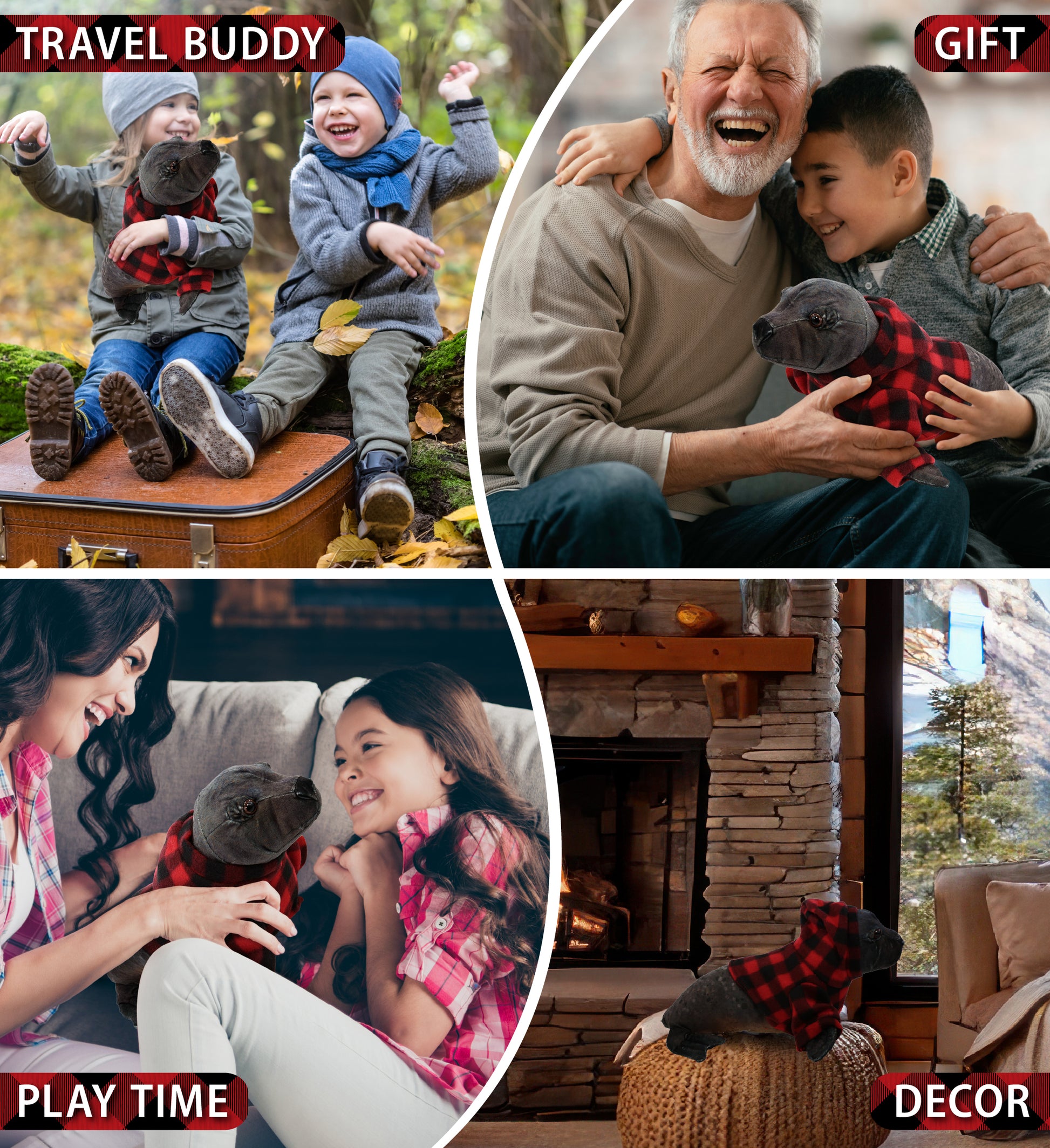 High-Quality Lumberjack Stuffed Animal - The sea lion stuffed toy is made from high-quality 100% polyester to ensure long-lasting comfort and durability, making it a perfect holiday buddy. It's black and red flannel shirt paired with a soft plaid hoodie, gives this plush a winter look perfect for holiday decor or thoughtful stuffed animals Christmas gift for loved ones. A heartwarming addition to your holiday traditions!