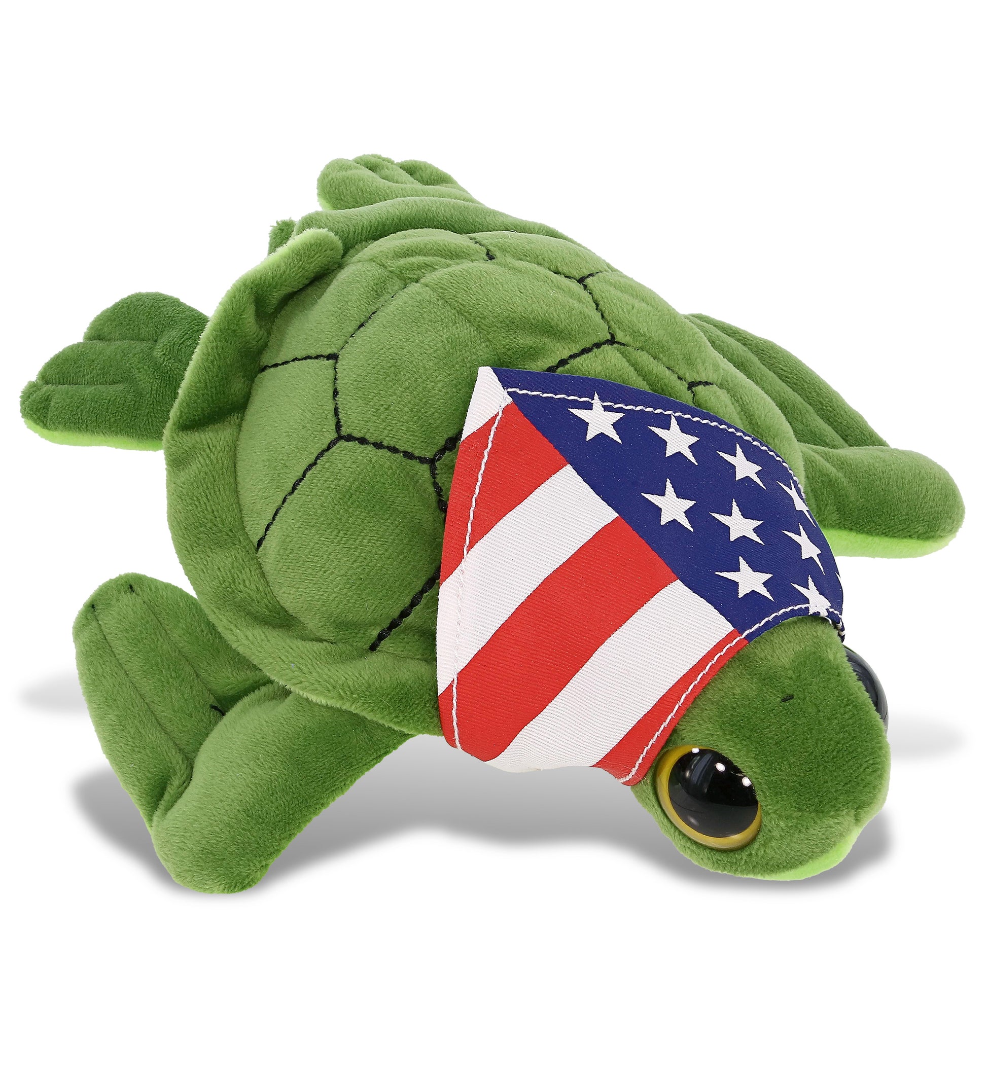 Features a Big Eye Sea Turtle Cute Plush with USA Flag Bandana - This cute sea turtle baby toy is designed with expressive realistic eyes, a soft green body, and a cool-looking American Flag bandana. The super soft teddy bear is the perfect stuffed sea turtle plush toy for collectors of stuffed plush, fans of toy sea turtle sets, or kids looking for a new soft toy teddy bear cuddle plush to add to their room or playtime adventures.