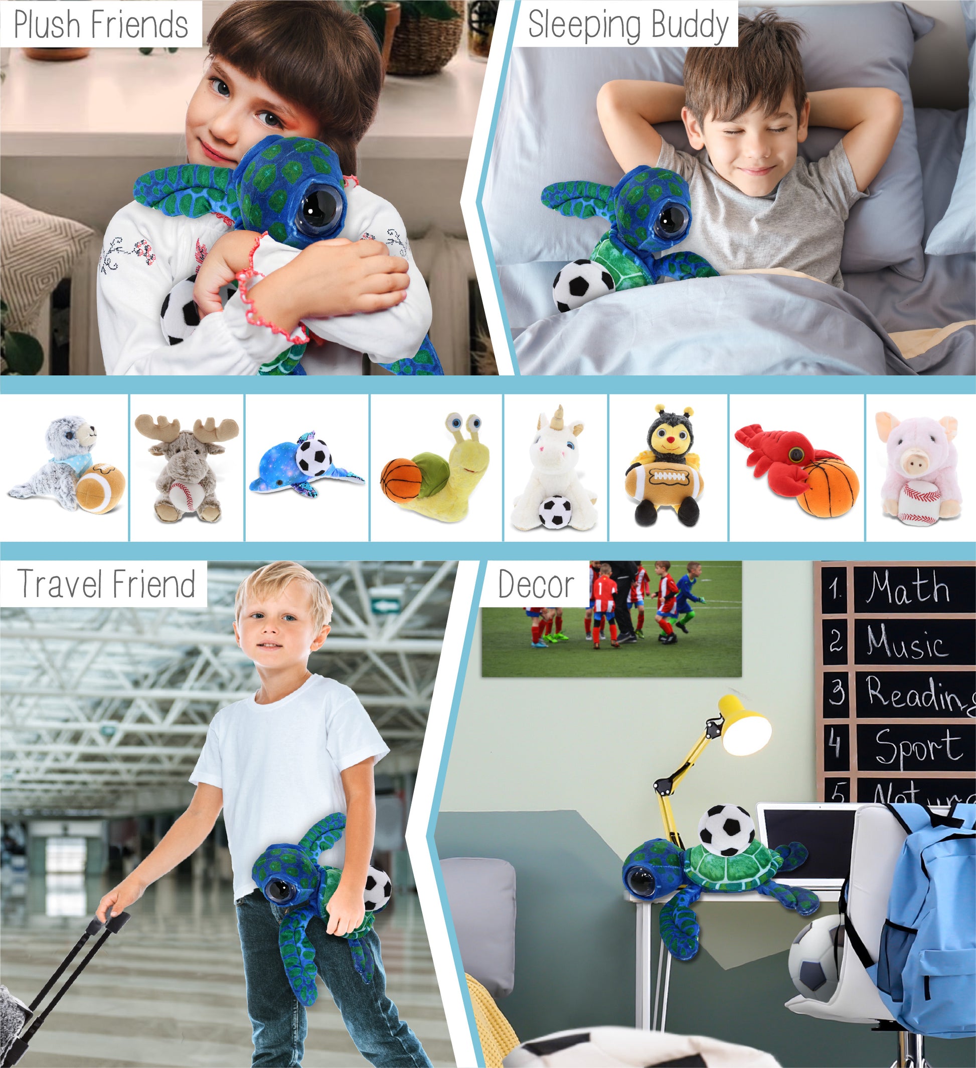 Included with the Purchase of the Cute Blue Sea Turtle Plush - Includes 1 DolliBu Wild Collection Blue Sea Turtle stuffed animal with a soccer ball plush, decorated with cool features of a cute turtle. The body with a sports gift ball plush makes the plush perfect for cuddles. The plush toy displays the cool details of a turtle. The eyes make the critter so charming. The cute blue sea turtle plush toy buddy measures 10Lx12Wx3H inches.