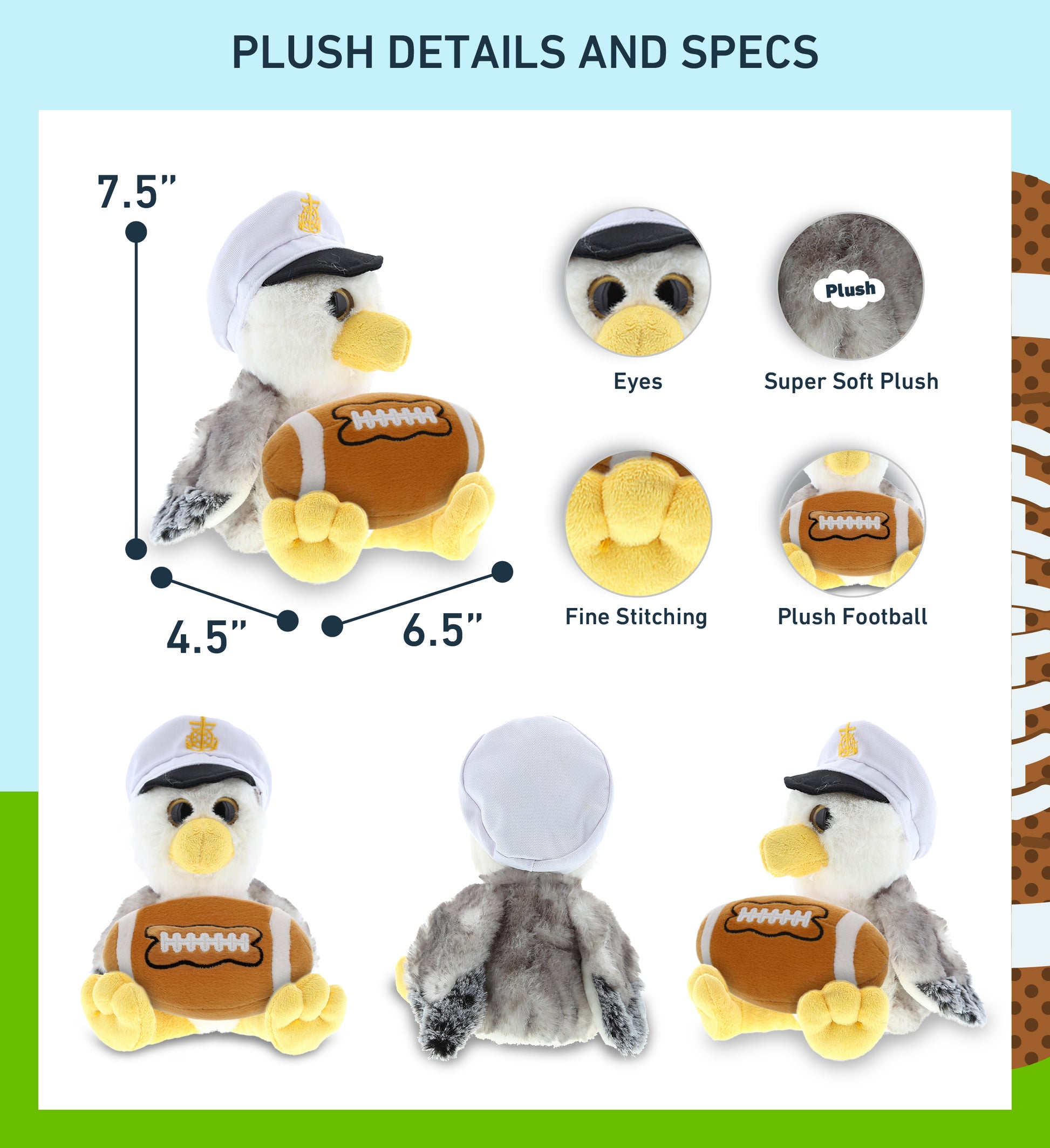 DolliBu Seagull Sailor Stuffed Animal with Football Plush - Soft Huggable Playtime Plush Toy, Cute Wildlife Gift, Cute Seagull Doll Animal Toy for Kids, Adults with Name Personalization - 7.5 Inches