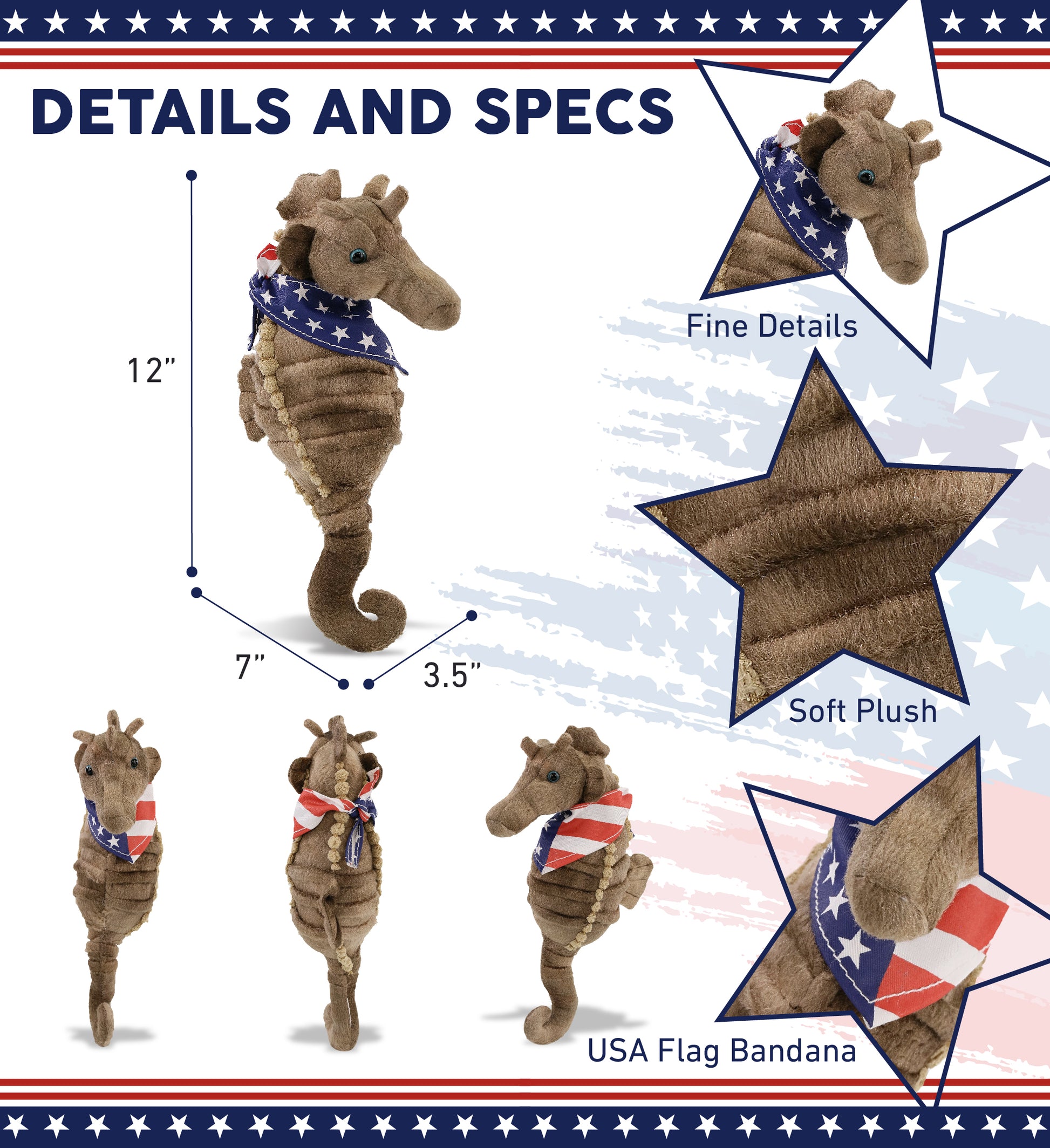 WILD COLLECTION PLUSH - 12" SEAHORSE WITH USA FLAG BANDANA
