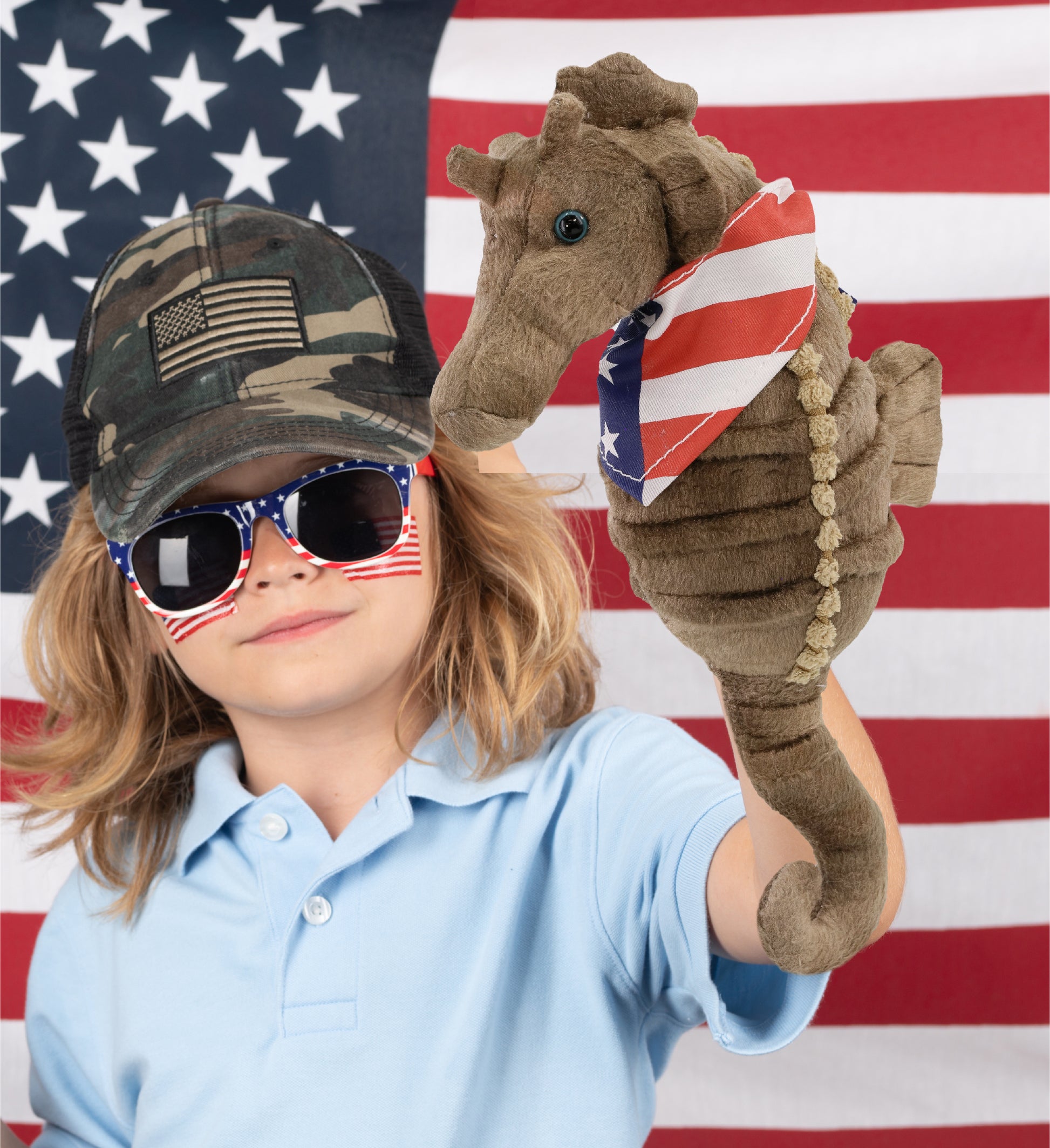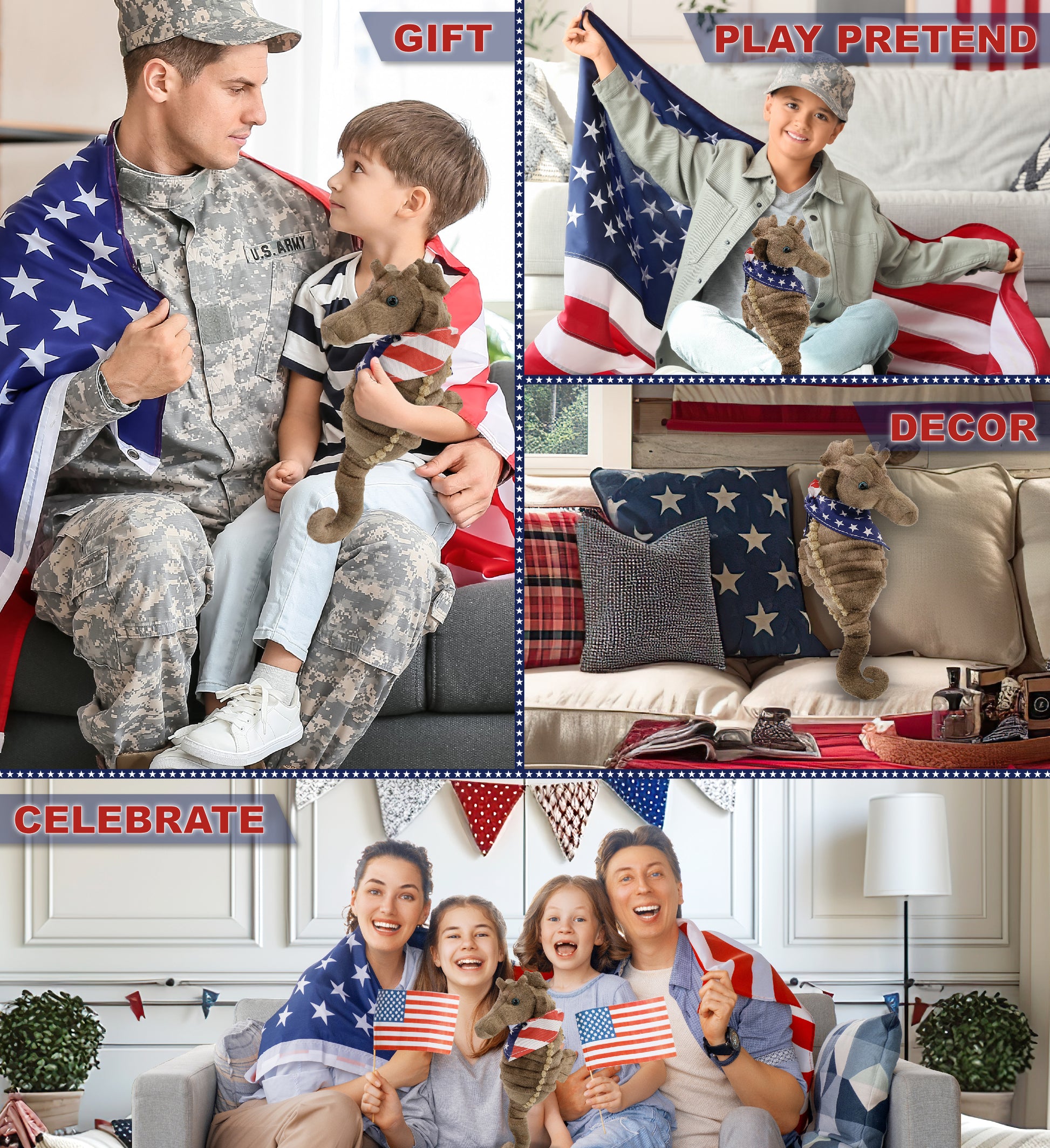 Perfect Plush Animal for Those Who Love Patriotic Toys for Kids and Adults - Perfect toy seahorse gift for birthdays, holidays and patriotic events. Ideal for kids, veterans, or anyone who loves unique plushies! Whether you’re shopping for USA teddy collectibles, seahorse themed gifts, or cute teddy bear plush toys, this seahorse fits the bill. Great for gifting on Fourth of July, Memorial Day, or any celebration of American pride.