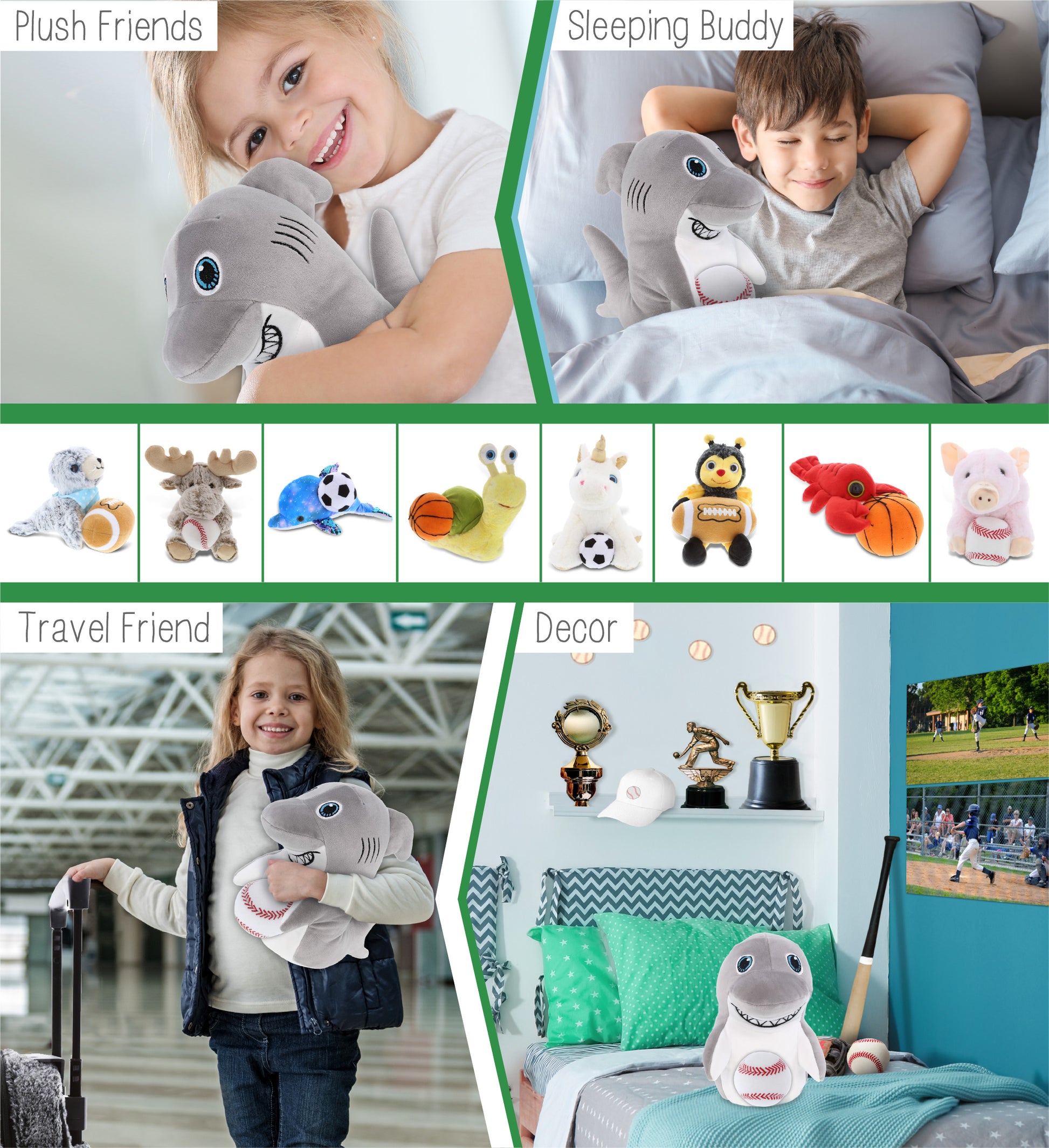 The Shark with Baseball Plush Toy Is for Everyone Who Loves Baseball Toys - Anyone will love receiving a cute stuffed toy with cool baseball plush. The girls and boys baseball toy and shark will be loved by all ages, making it perfect gifts for boys who love baseball. Snug-Mooshies Standing Shark stuffed animal are timeless gifts for baseball players, or as baseball fan gifts, and for kids who love decorating their rooms with baseball stuff.