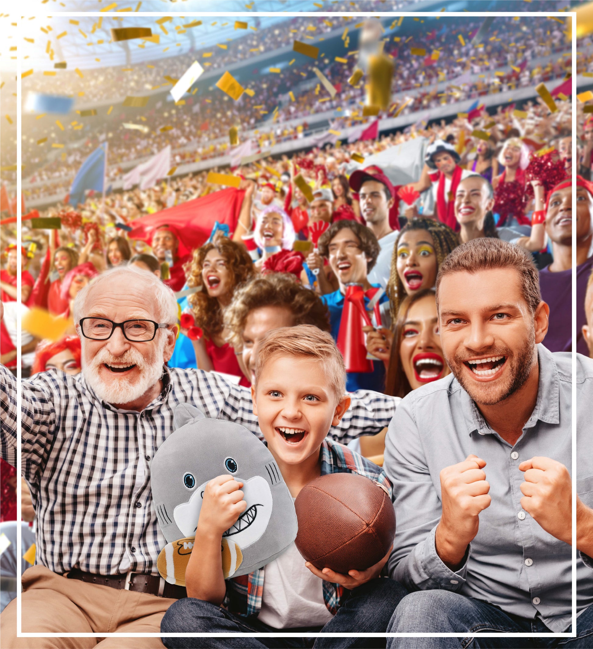 Personalization, Customization, and Add-On Options - This Super Soft Sports Stuffed Animal Snug-Mooshies Shark Plush comes customized with a football plush. You can personalize it with the name of your loved one imprinted on the item. You also have the option to add some or all of the cool add-ons to make your gift extra special: 1) Gift Bag; 2) Tissue Paper; 3) Greeting Card.