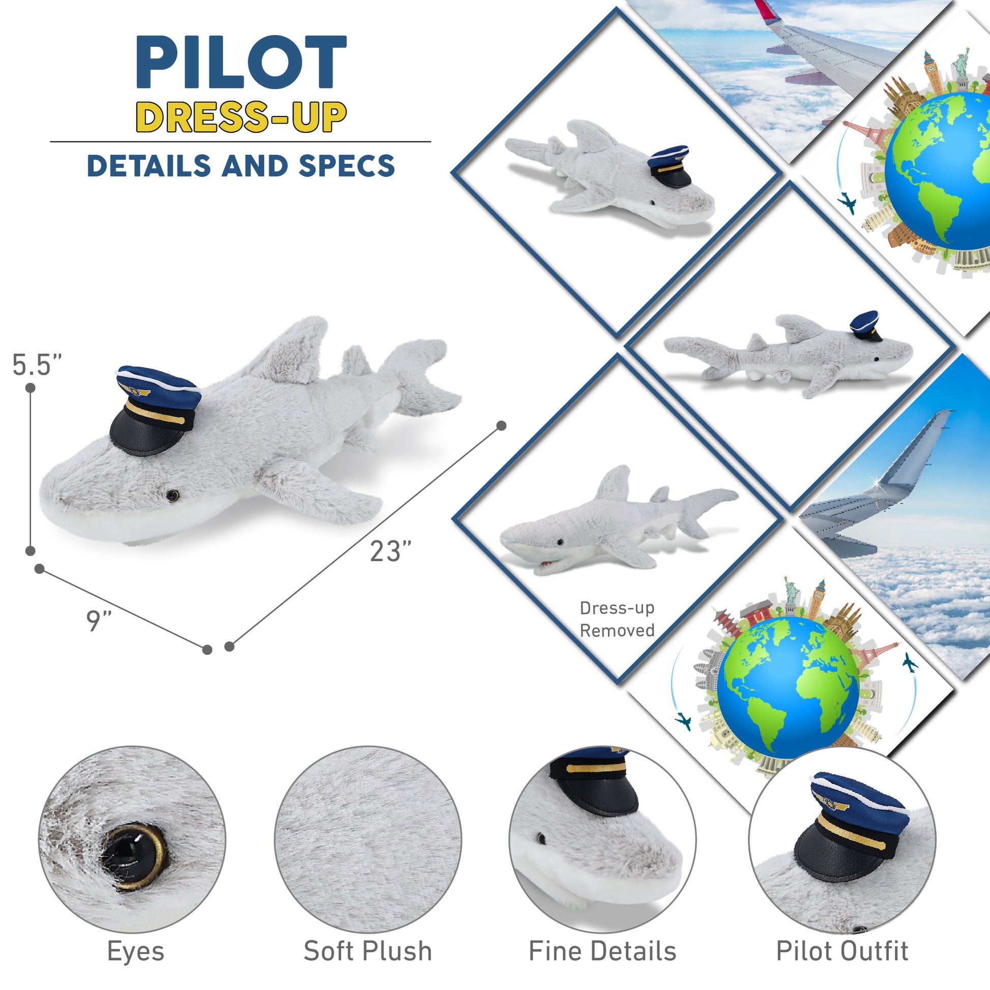 Features a Cute Teddy Bear Plush with Pilot Uniform Cap - This shark doll features ready-to-fly pilot cap for teddy bears. The shark plush features cool details and realistic design, while the pilot career dress up costume features a classic pilot captain hat.
