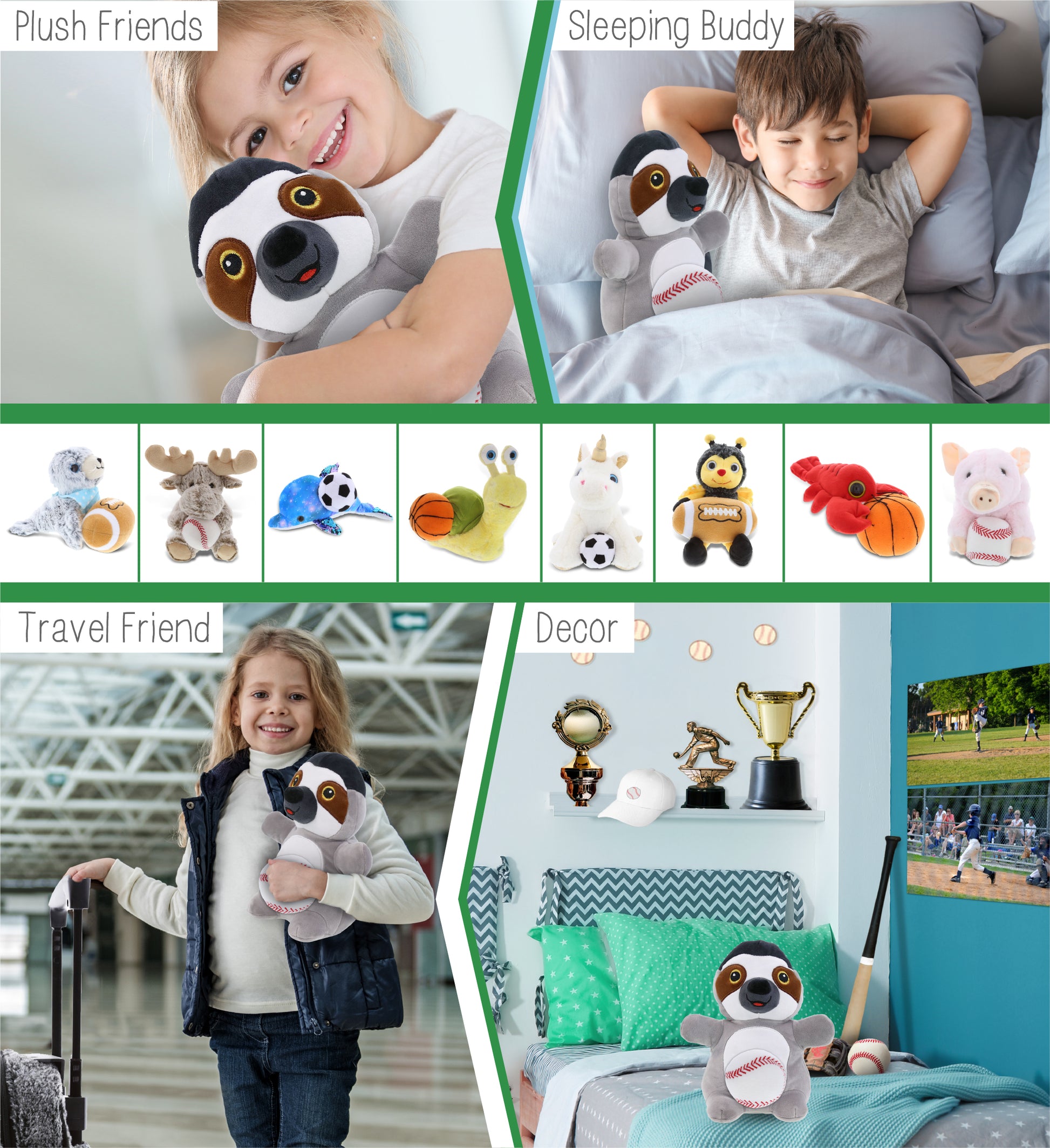 The Sloth with Baseball Plush Toy Is for Everyone Who Loves Baseball Toys - Anyone will love receiving a cute stuffed toy with cool baseball plush. The girls and boys baseball toy and sloth will be loved by all ages, making it perfect gifts for boys who love baseball. Snug-Mooshies Standing Sloth stuffed animal are timeless gifts for baseball players, or as baseball fan gifts, and for kids who love decorating their rooms with baseball stuff.