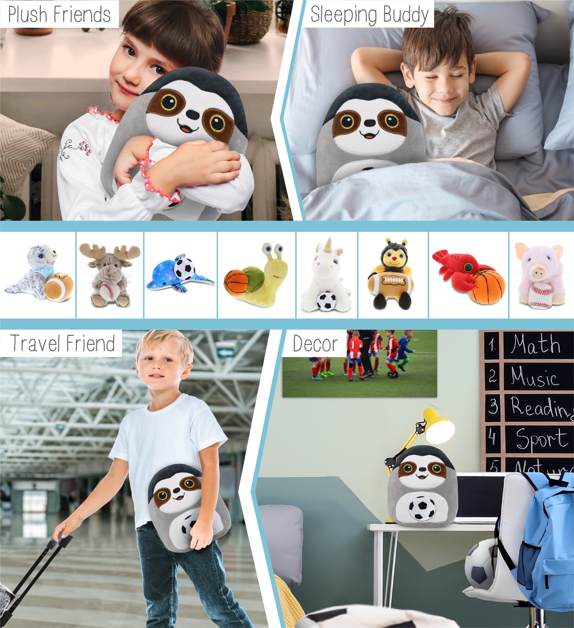 High-Quality Soft Sloth Plush Stuffed Animal - The machine-sewn Snug-Mooshies Sloth toy plush and soccer ball is made of premium-quality polyester, stuffed with soft fluffy polyester fillings. Made with durable, child-friendly features. Cute and snuggly sloth sitting down. Cute soft toys designed to be your little one's best buddies. To maintain fluffy stuffed animals, wash bear plush toys with cold soapy water and allow it to air dry.