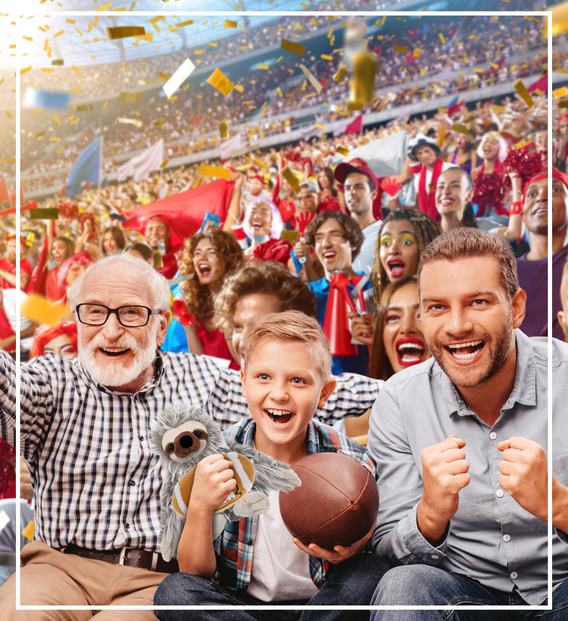 Personalization, Customization, and Add-On Options - This Super Soft Sports Stuffed Animal Grey Sloth Plush comes customized with a football plush. You can personalize it with the name of your loved one imprinted on the item. You also have the option to add some or all of the cool add-ons to make your gift extra special: 1) Gift Bag; 2) Tissue Paper; 3) Greeting Card.