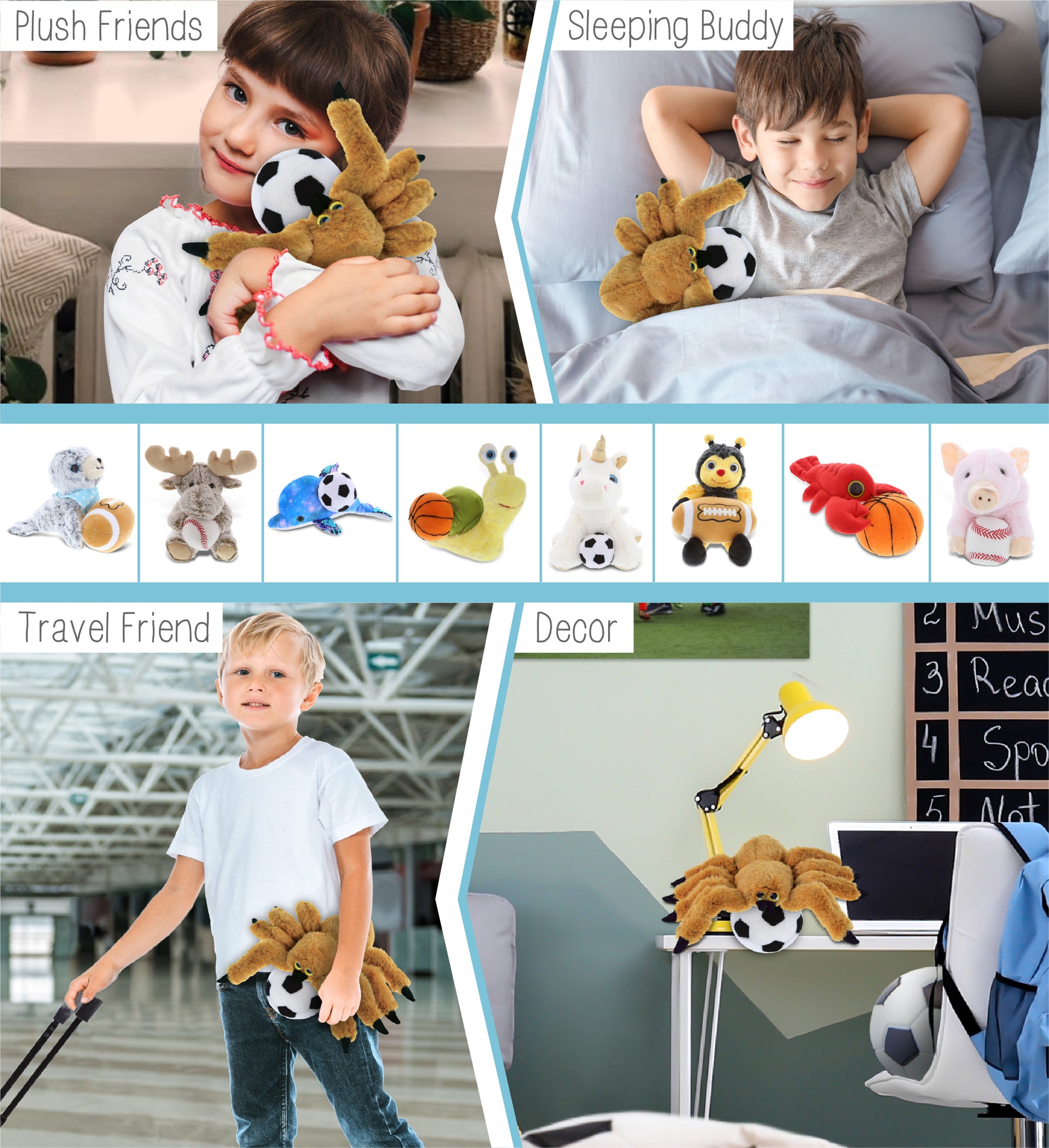 Included with the Purchase of the Cute Super Soft Spider Plush - Includes 1 DolliBu Brown Spider Super Soft Plush with a soccer ball plush, decorated with realistic features. The spider's body with a sports gift ball plush makes the plush perfect for cuddles. The spider plush toy features details like its characteristic legs. The spider's eyes make the critter so charming. The cute spider plush toy buddy measures 11Lx7Wx2H inches.