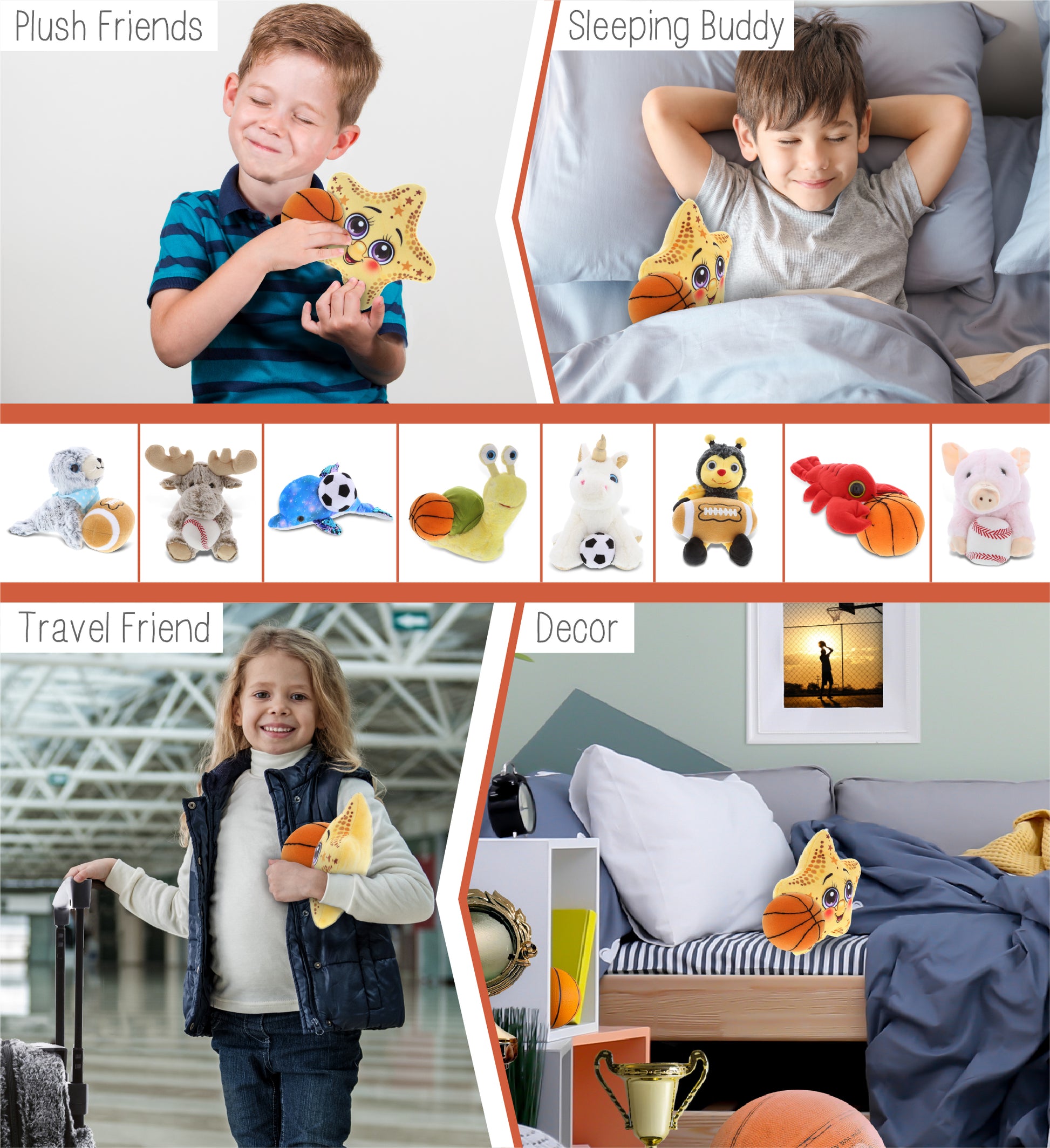 Included with the Purchase of Adorable Cute Starfish Plush - Includes 1 DolliBu Plush Buddies Starfish with a basketball plush, decorated with realistic features of a cute plush animal. The body with a sports gift ball plush makes the plush perfect for cuddles. The starfish plush toy features details like its characteristic arms. The starfish eyes make the critter so charming. The plush toy buddy measures 6.3Lx6.3Wx2H inches.