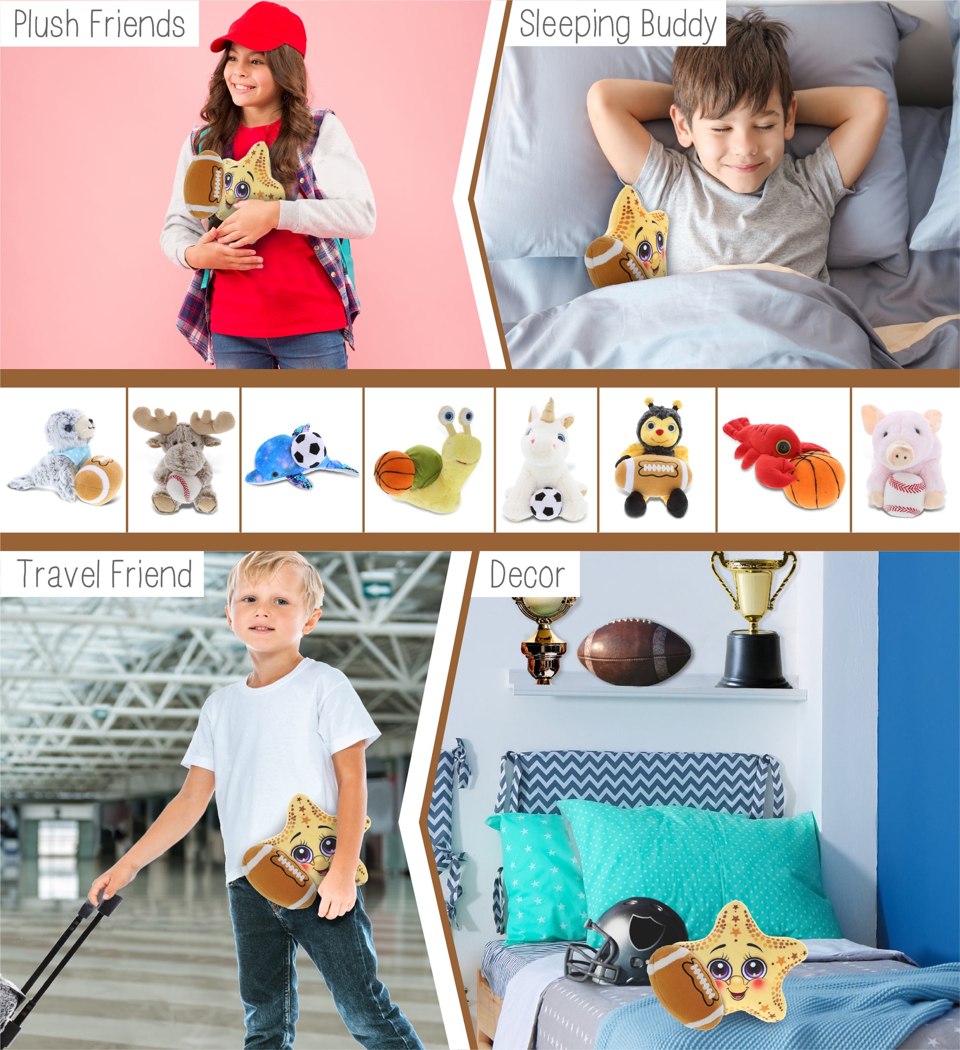High-Quality Plush Buddies Starfish Stuffed Animal - The machine-sewn starfish toy plush and football are made of premium-quality polyester, stuffed with soft, fluffy polyester fillings. Made with durable and child-friendly features. Cute and snuggly starfish plush toy. Cute, soft toys designed to be your little one's best buddies. To maintain fluffy stuffed animals, wash plush toys with cold soapy water and allow them to air dry.