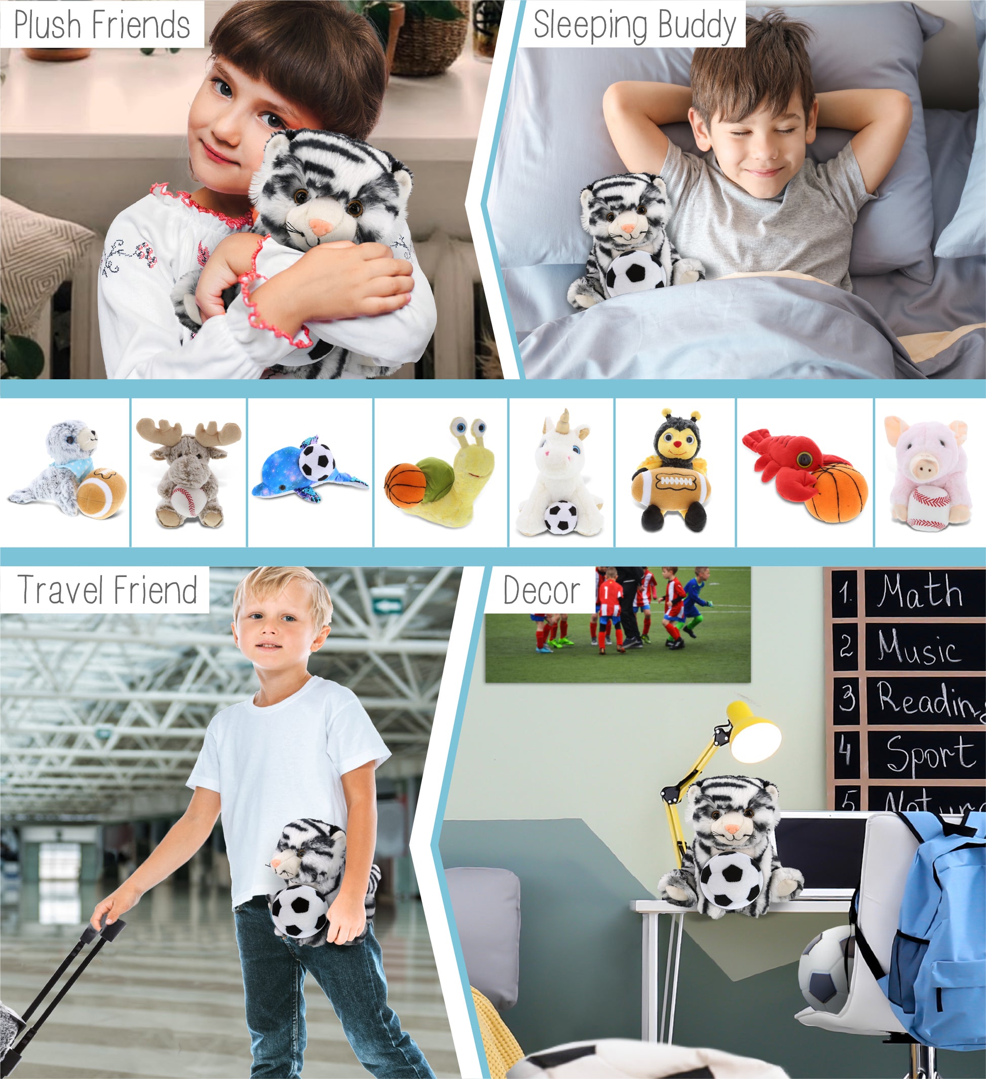HIGH QUALITY SUPER SOFT PLUSH TIGER STUFFED ANIMAL - The machine-sewn tiger toy plush and soccer ball is made of premium-quality polyester, stuffed with soft fluffy polyester fillings. Made with durable and child-friendly features. Cute and snuggly tiger sitting down. Cute soft toys designed to be your little one's best buddies. To maintain fluffy stuffed animals, wash tiger plush toys with cold soapy water and allow it to air dry.