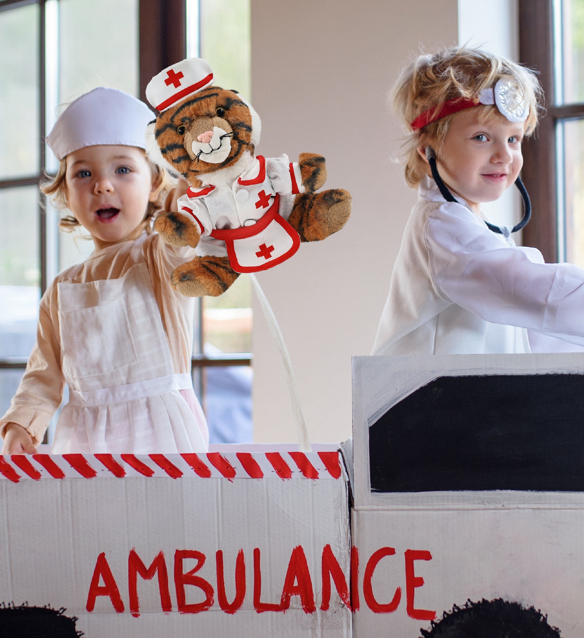 SUPER-SOFT PLUSH - SQUAT TIGER 8" With NURSE Dress-Up