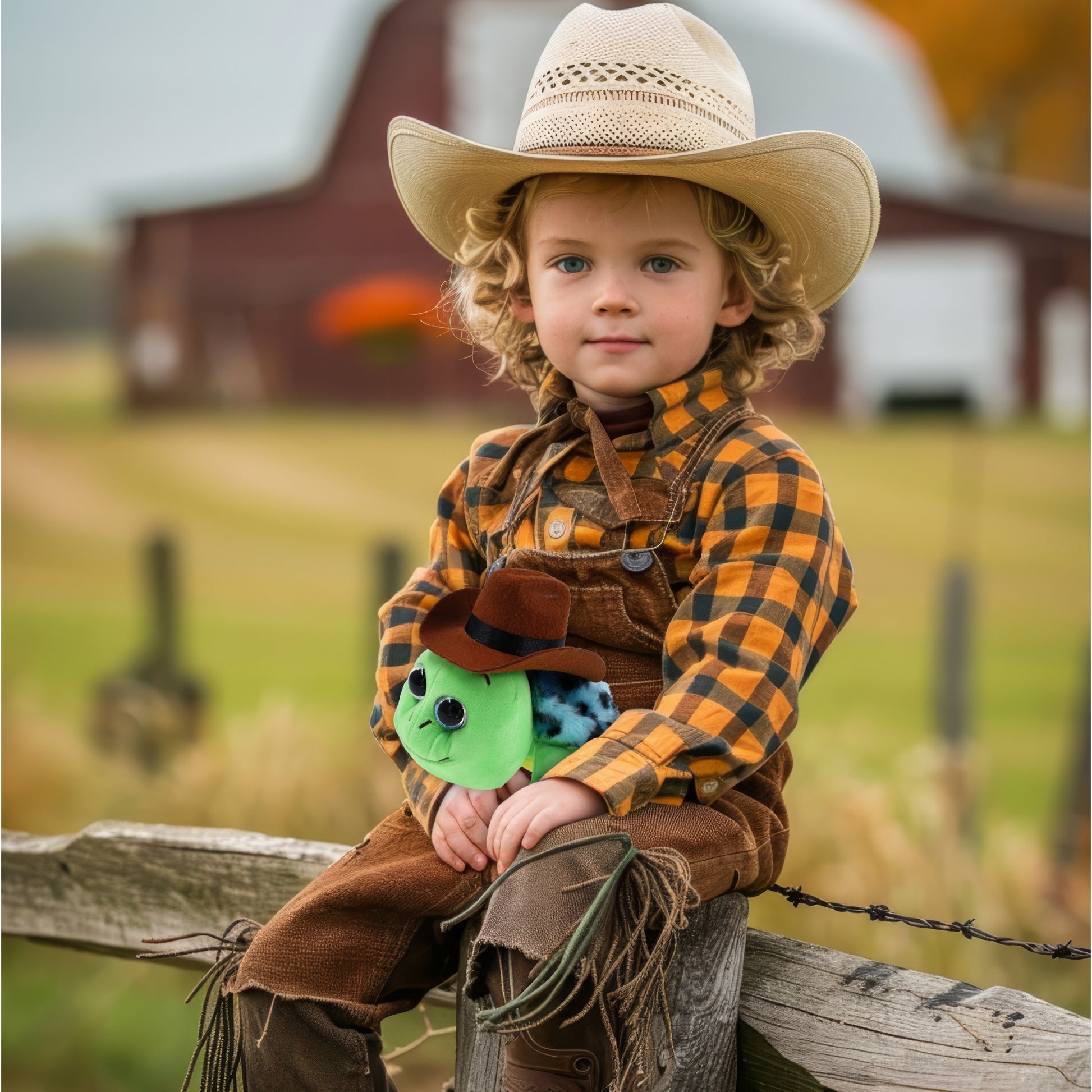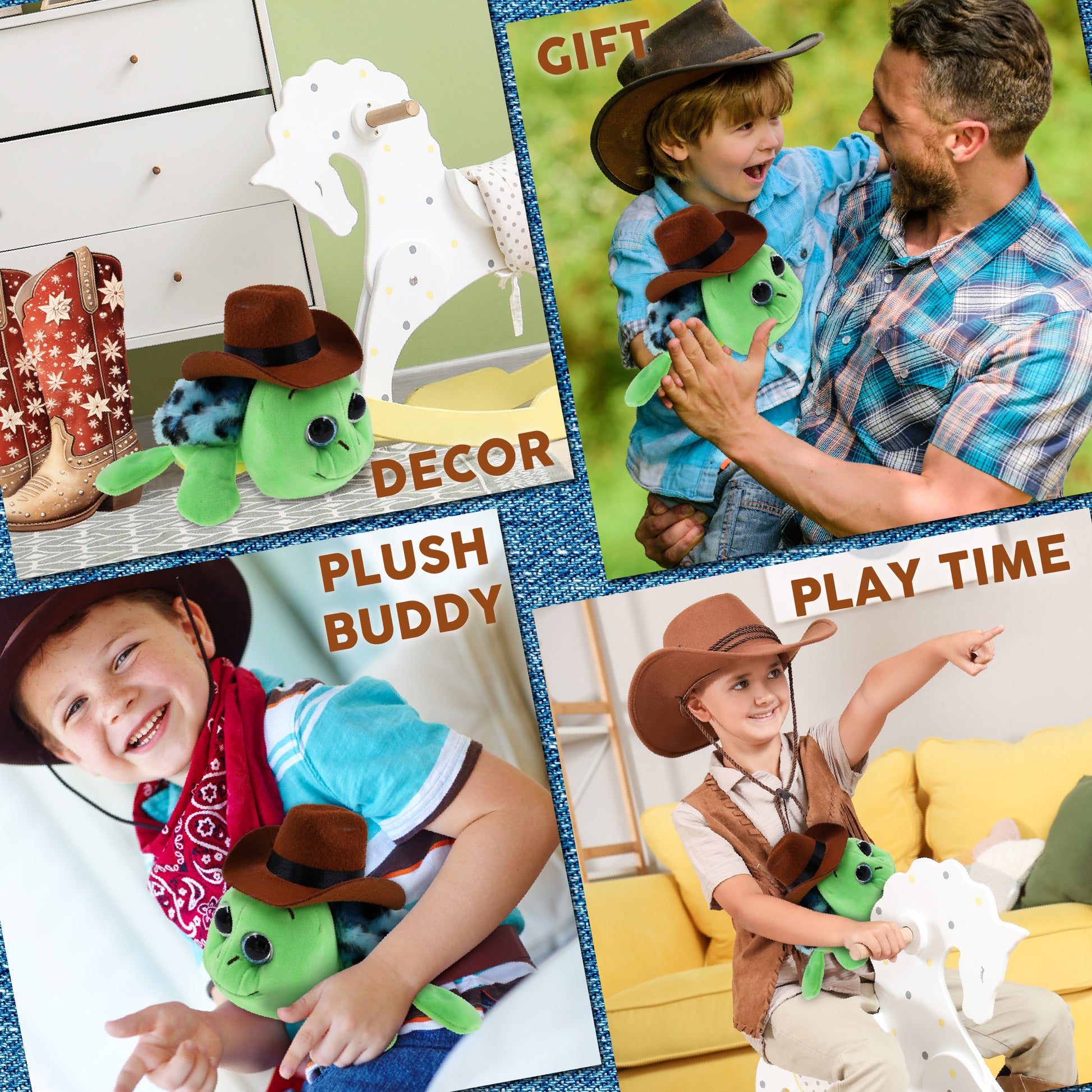 Made of High-Quality Polyester - The cowboy plush doll hat and the plush toy sea turtle are crafted with super soft, durable, premium-quality polyester materials. This cute plush is built to last through animal cowboy showdown. The cowboy stuff hat can be easily put on any stuffed animal doll. Perfectly built to withstand everyday cuddles.
