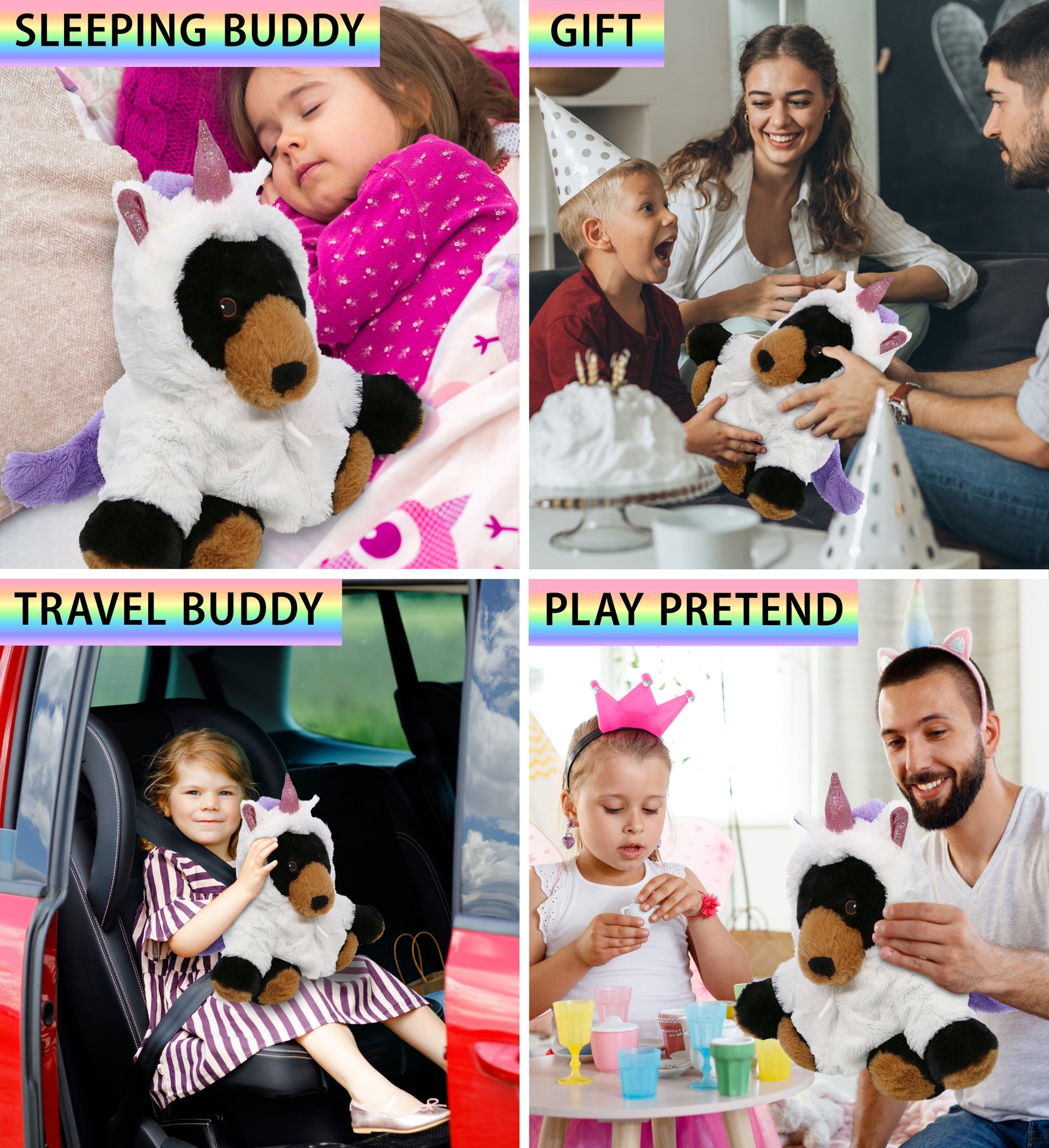Ideal Use for The Unicorn Stuffed Toy Plush - Make your kid's day by surprising them with an Eco-Friendly Black Bear Unicorn Stuffed Animal! Fluffy and cute, the Unicorn Black Bear puts a twist on your usual unicorn plush and makes an amazing addition to your kids collection of unicorn-stuffed toys. Kids will love dressing up Black Bear Unicorn and playing pretend. This stuffed Unicorn dress-up plush toy makes a great sleeping and travel buddy.