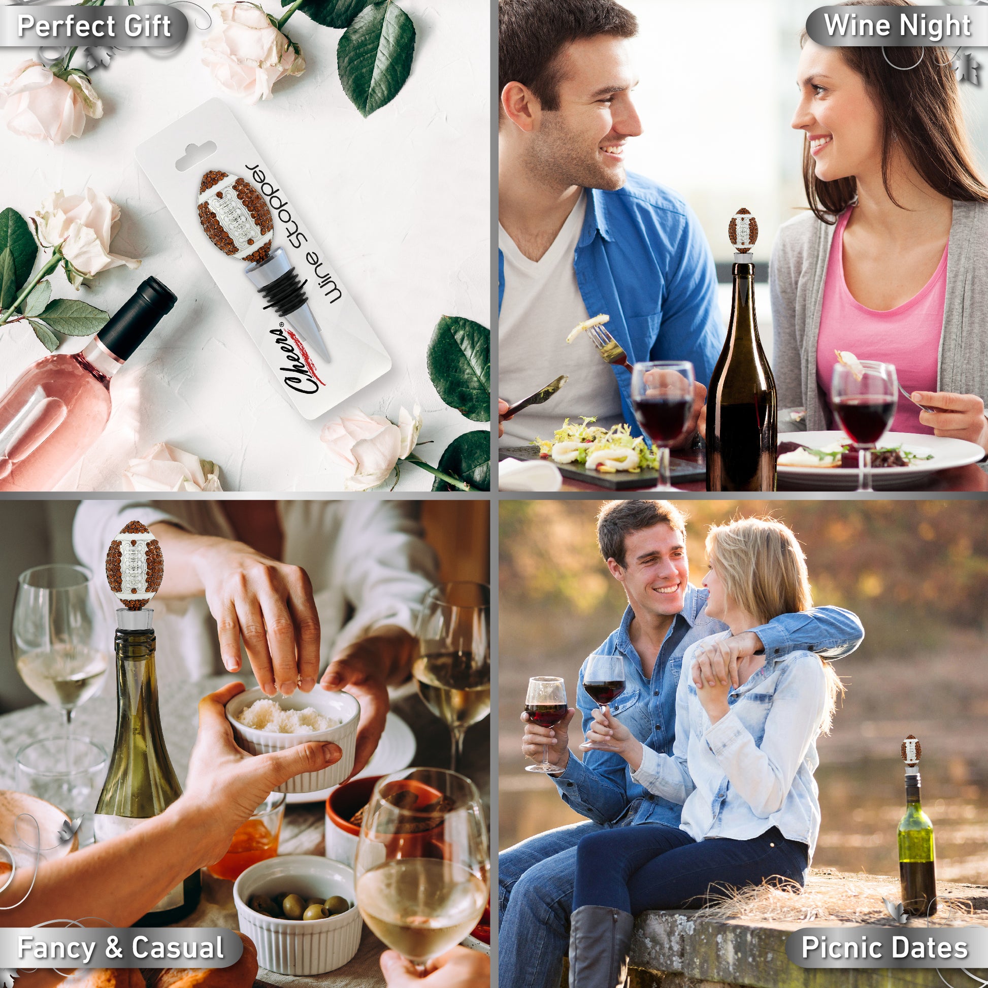 Made with Premium-Quality Materials - The silver football wine toppers for wine bottles are made of premium-quality zinc alloy, designed for a leak-proof seal to keep your partially consumed wine tasty and fresh for days. A compact, sturdy, reliable Sports stopper with brown rhinestones for a unique look. The airtight, cute wine stoppers are built with food-grade rubber materials for safe and effective wine bottle stoppers for glass bottles.