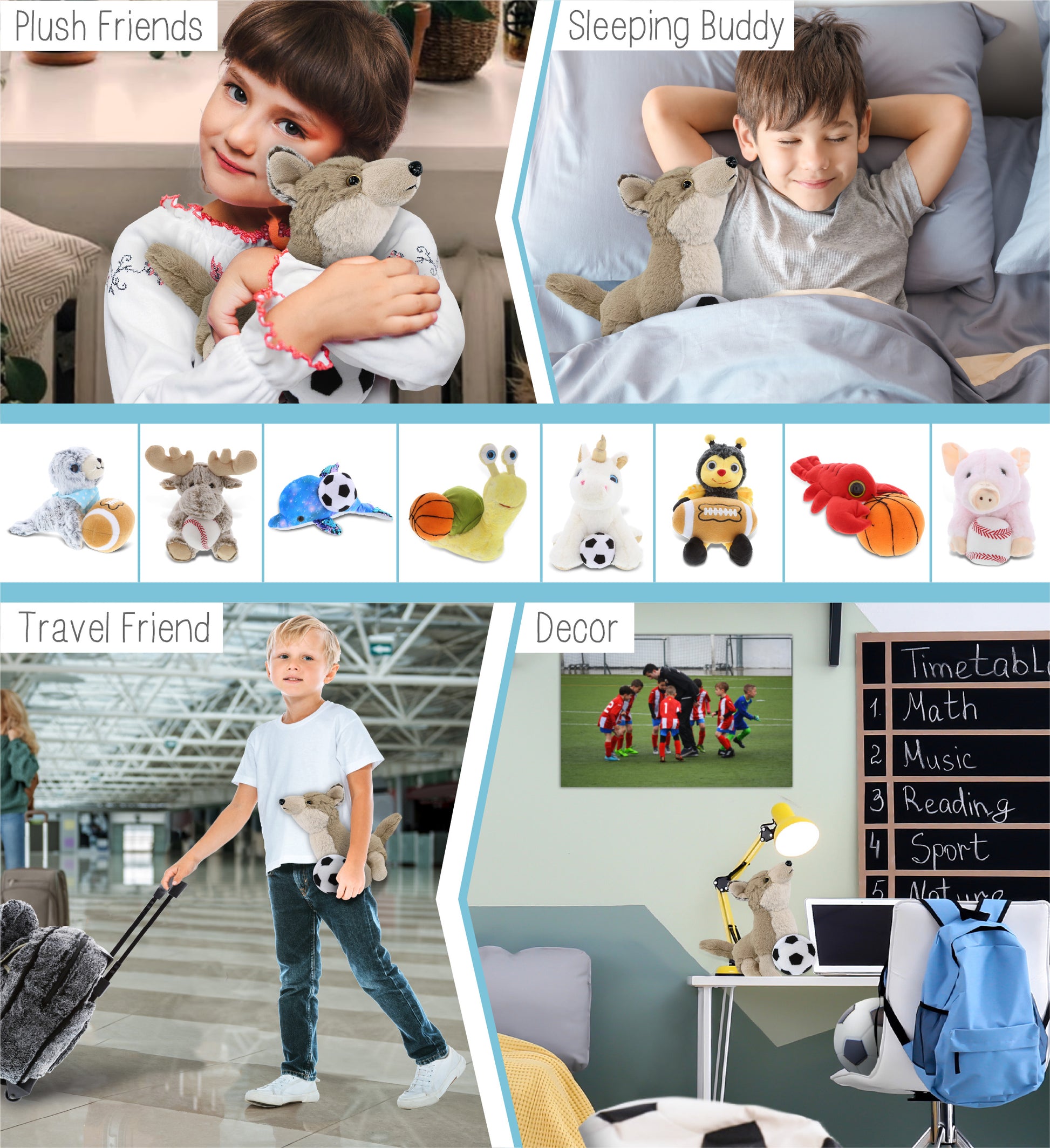 High-Quality Super Soft Howling Wolf Plush Stuffed Animal - The machine-sewn wolf toy plush and soccer ball is made of premium-quality polyester, stuffed with soft fluffy polyester fillings. Made with durable, child-friendly features. Cute and snuggly howling wolf sitting down. Cute soft toys designed to be your little one's best buddies. To maintain fluffy stuffed animals, wash bear plush toys with cold soapy water and allow it to air dry.