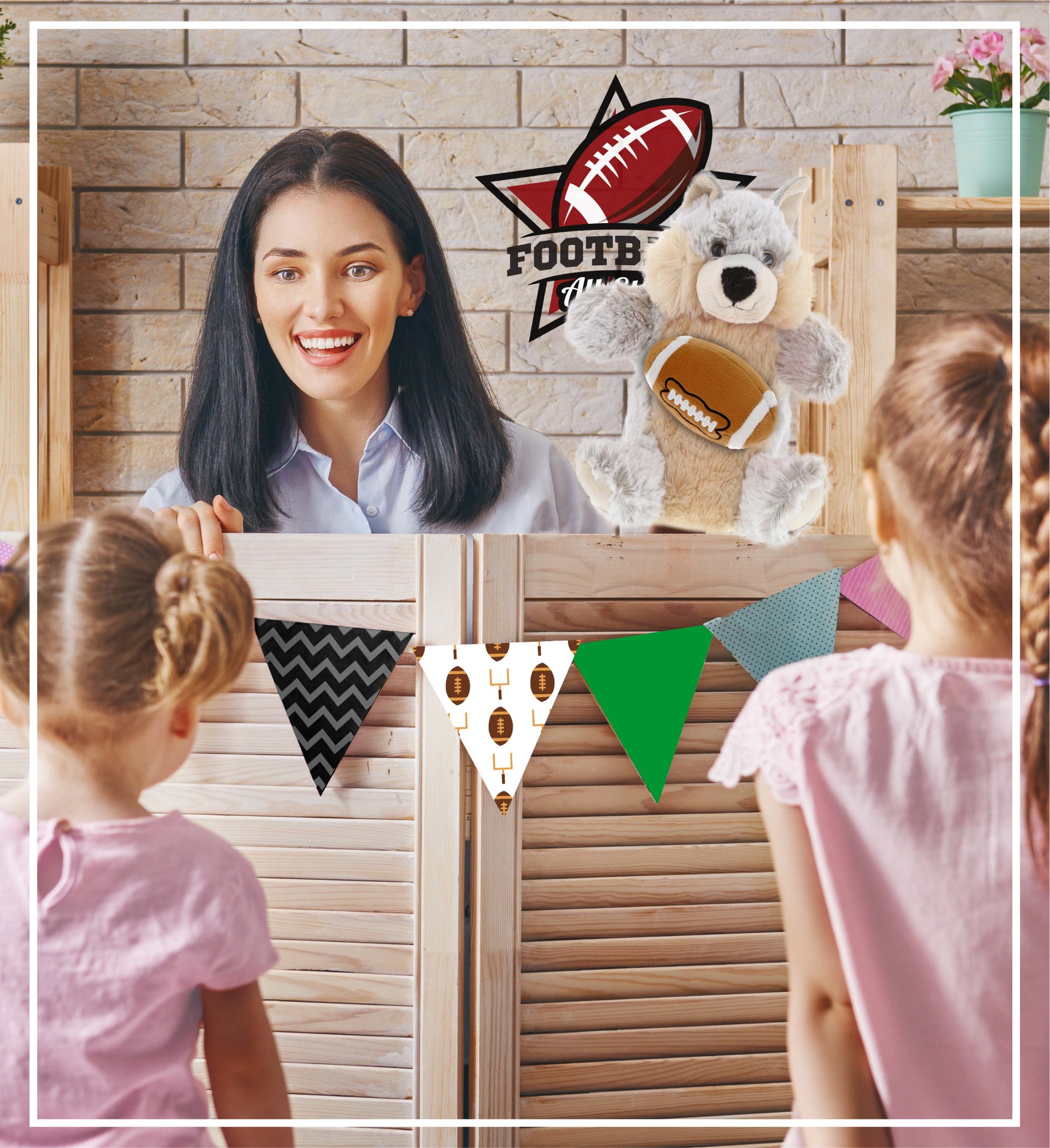 Personalization, Customization, and Add-On Options - This Super Soft Sports Stuffed Animal Wolf Hand Puppet Plush comes customized with a football plush. You can personalize it with the name of your loved one imprinted on the item. You also have the option to add some or all of the cool add-ons to make your gift extra special: 1) Gift Bag; 2) Tissue Paper; 3) Greeting Card.